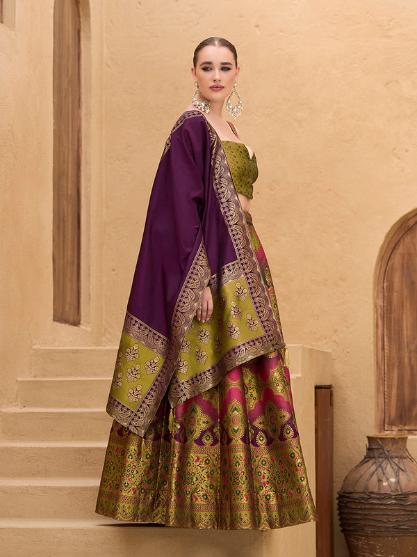Monjolika Fashion Designer Lehenga Choli Jacquard Kanjivaram Silk In Mehendi Green
