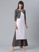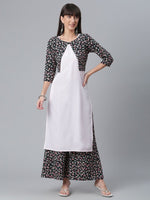 Black Digital & Foil Floral Print Moss Crepe Palazzo, has a slip-on closure. Black Digital Foil Floral Print Moss Crepe Jacket, It has 3/4th Sleeve & Boat Neck. Let your little Women flaunt her fashionable side with this clothing set from Ahalyaa. Comfy and stylish, it will make her look even more adorable."