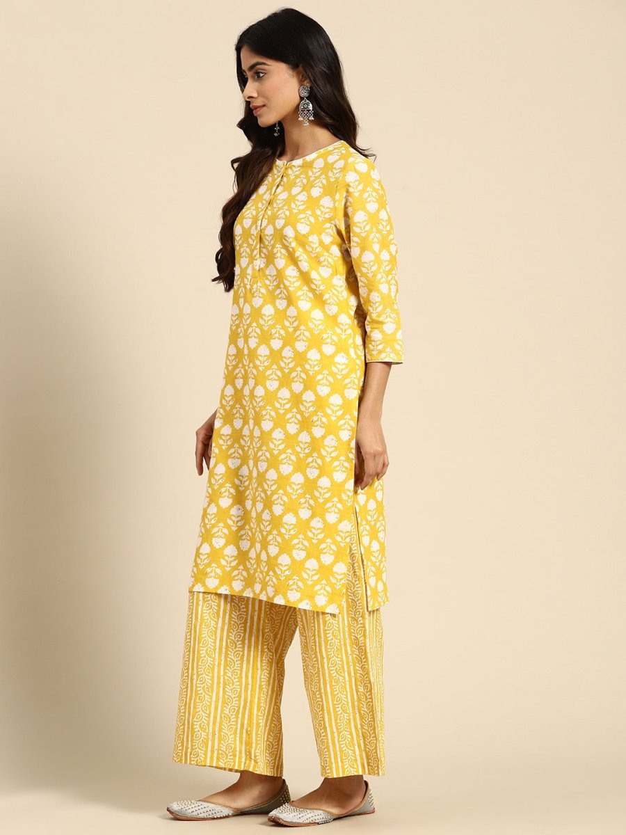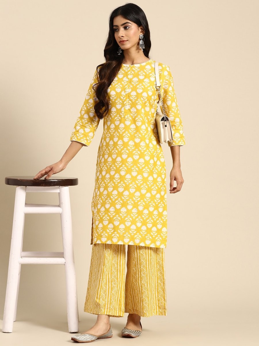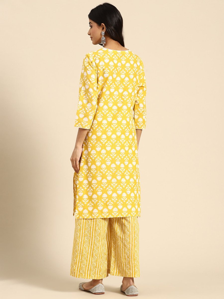 Yellow printed Kurta with Palazzos