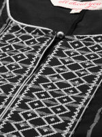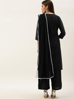 All About You Women Black & Grey Striped Keyhole Neck Kurta with Palazzos & Dupatta - XS