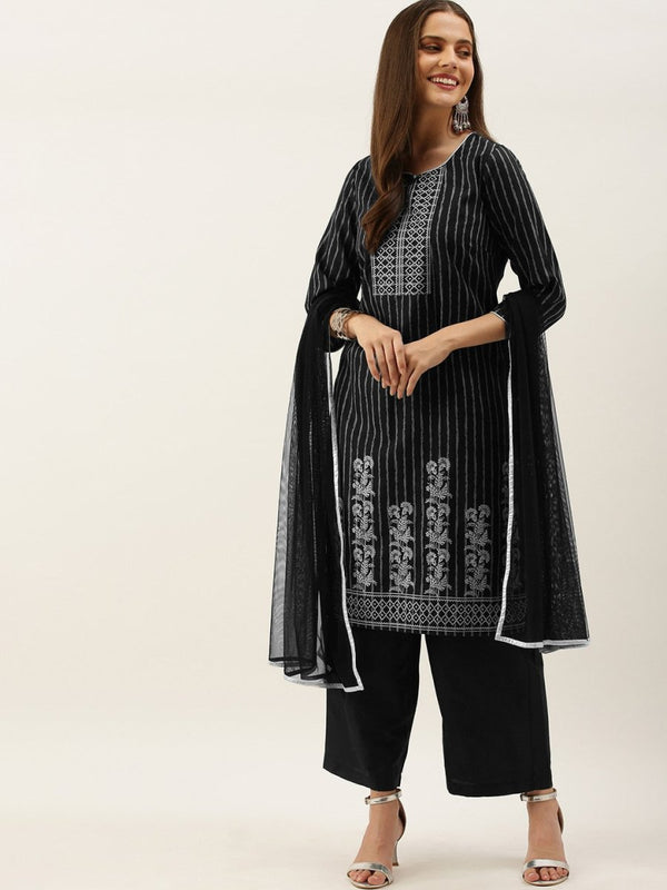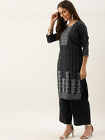 All About You Women Black & Grey Striped Keyhole Neck Kurta with Palazzos & Dupatta