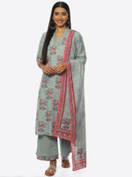 Biba Floral Printed Kurta With Palazzos & Dupatta