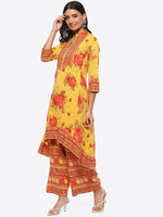 Biba Floral Printed Thread Work Kurta with Palazzos