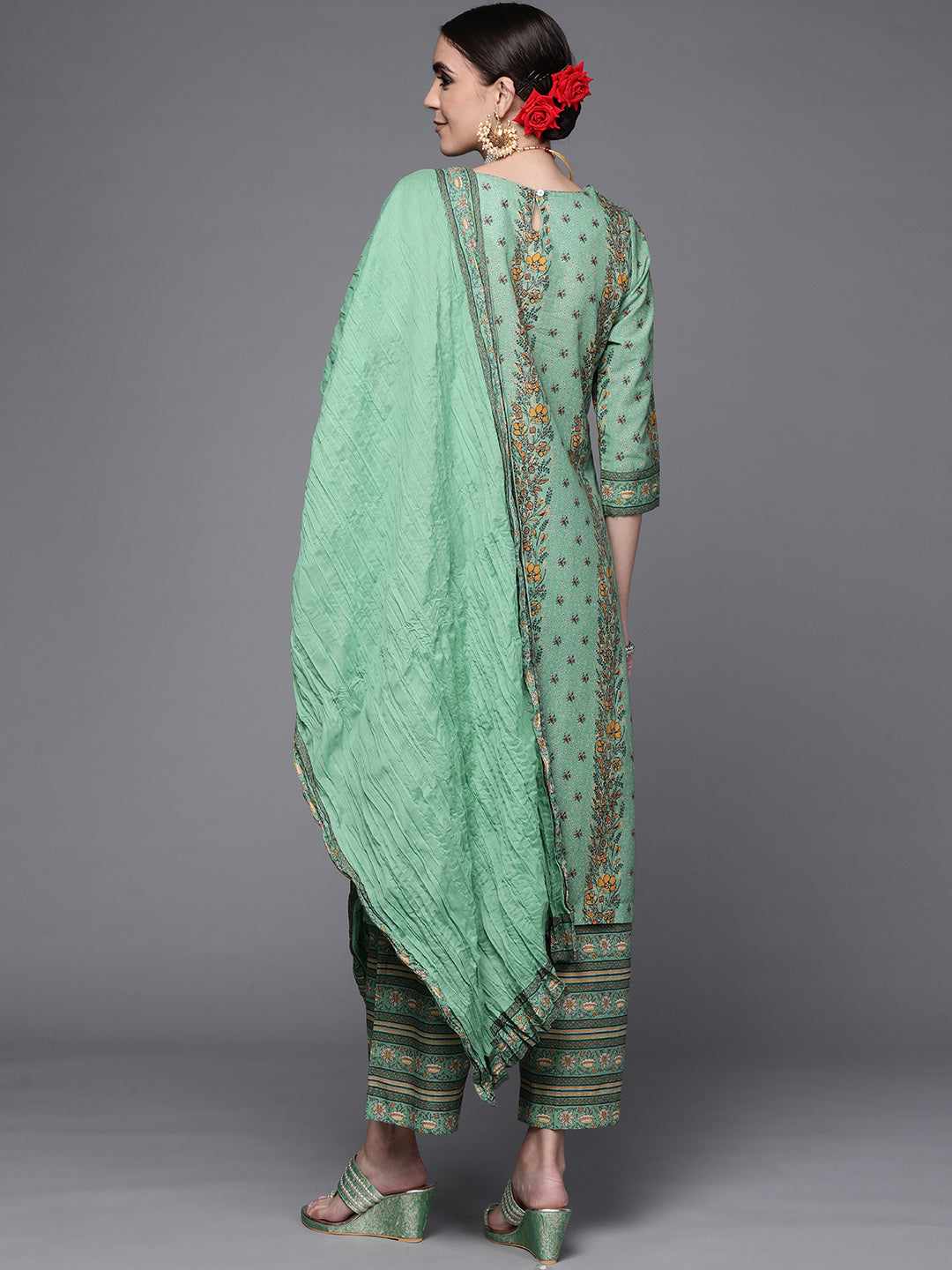 Biba Women Green Ethnic Motifs Printed Pure Cotton Kurta with Palazzos & With Dupatta