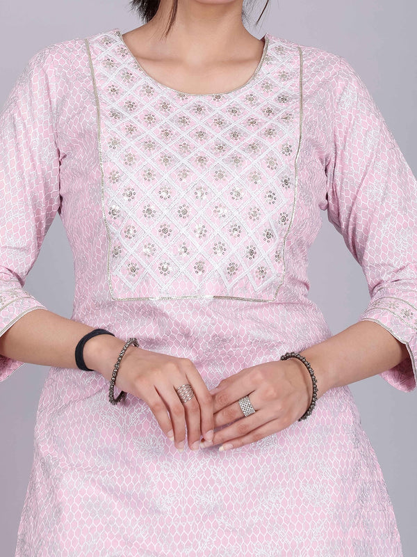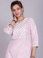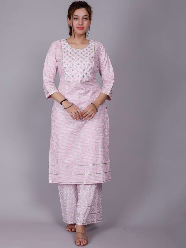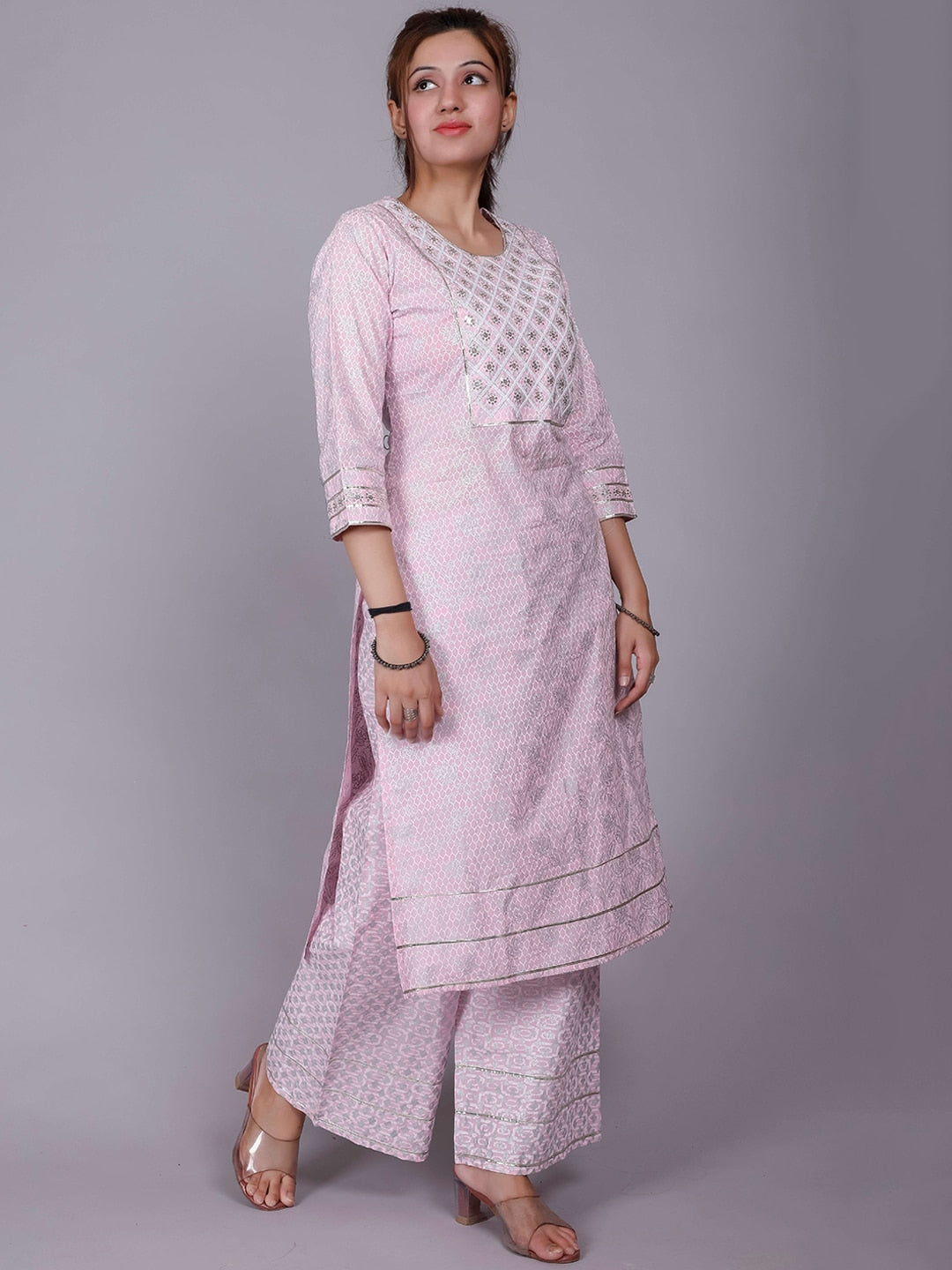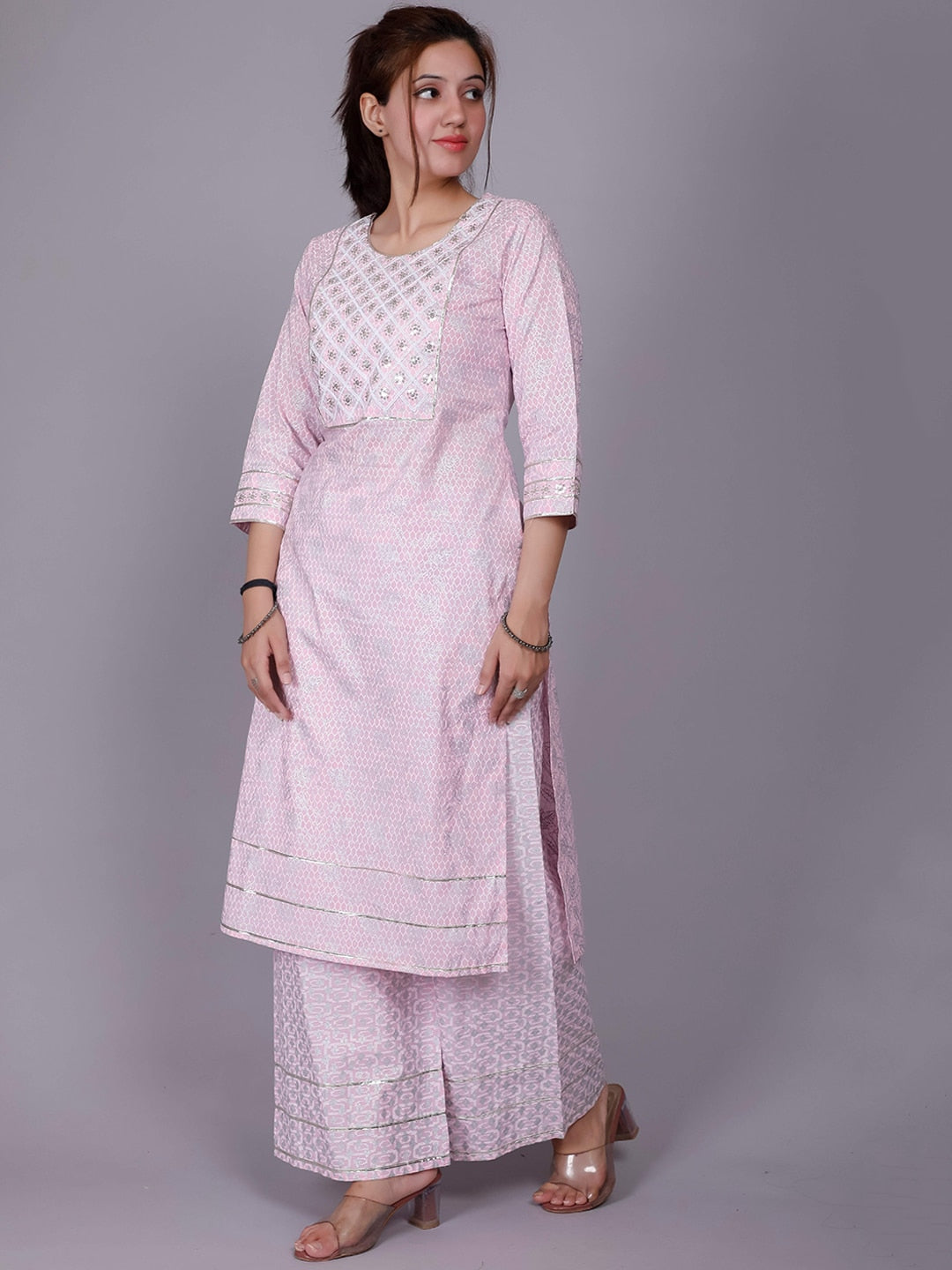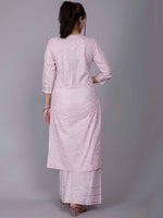 HERE&NOW Pink Ethnic Motifs Embroidered Sequinned Pure Cotton Kurta with Palazzos Product Details Pink embroidered Kurta with Palazzos Ku...