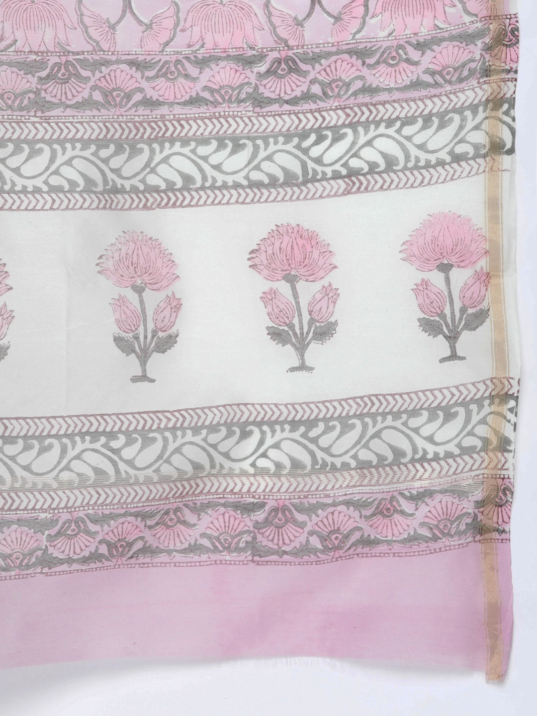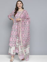 HERE&NOW Women Floral Printed Regular Pure Cotton Kurta with Palazzos & With Dupatta