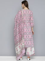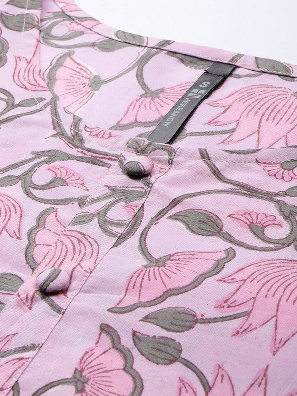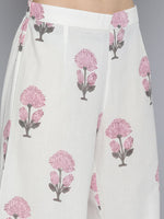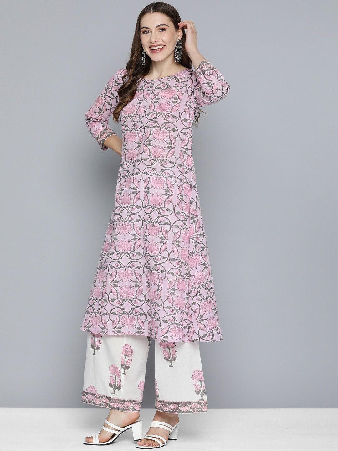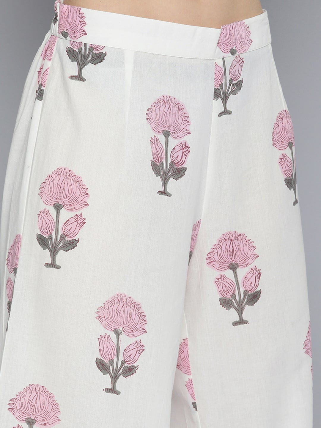 HERE&NOW Women Floral Printed Regular Pure Cotton Kurta with Palazzos & With Dupatta Product Details Pink printed Kurta with Palazzos wi...