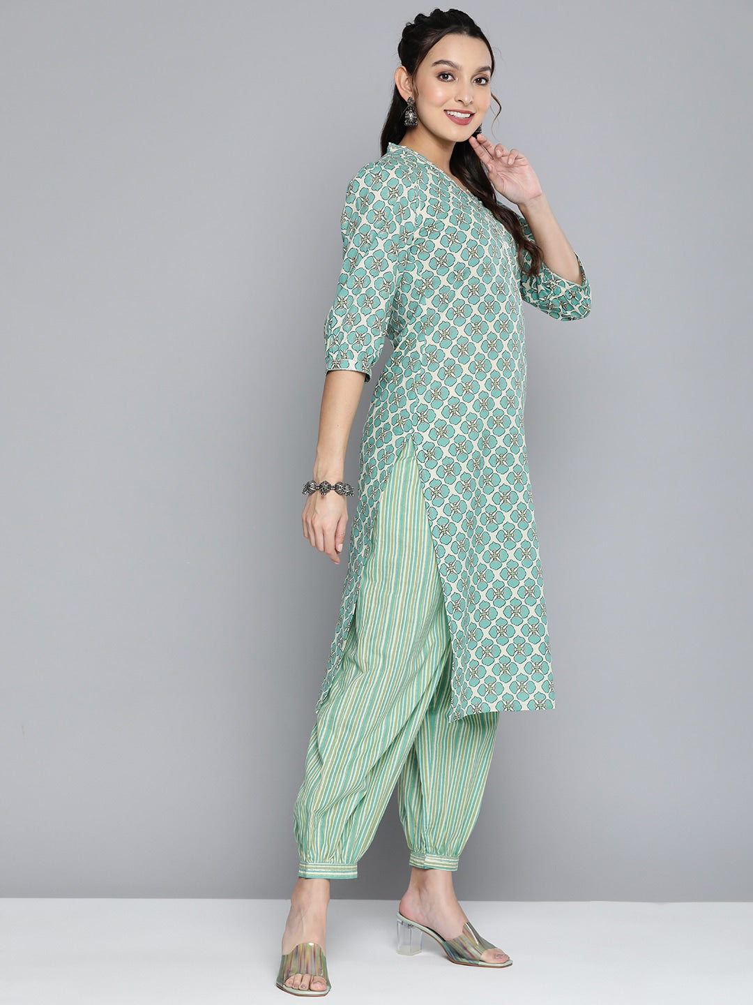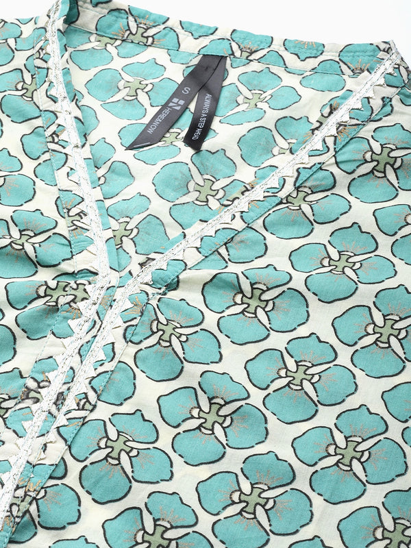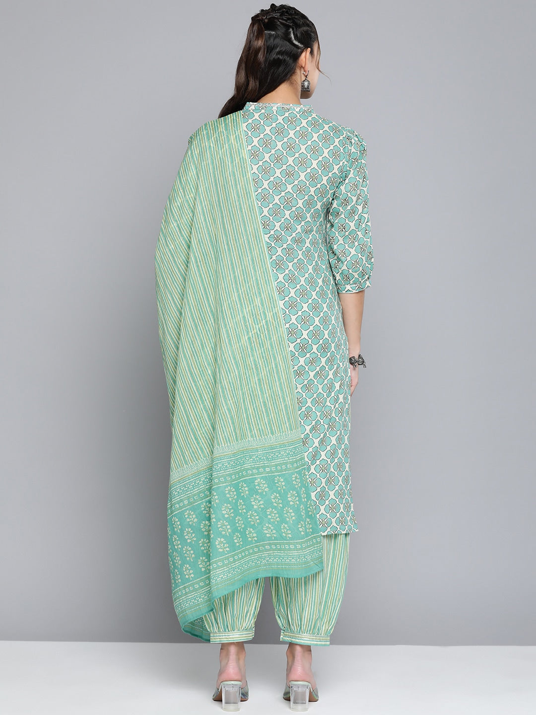 HERE&NOW Women Off White Ethnic Motifs Printed Pure Cotton Kurta with Palazzos & With Dupatta