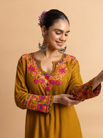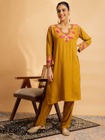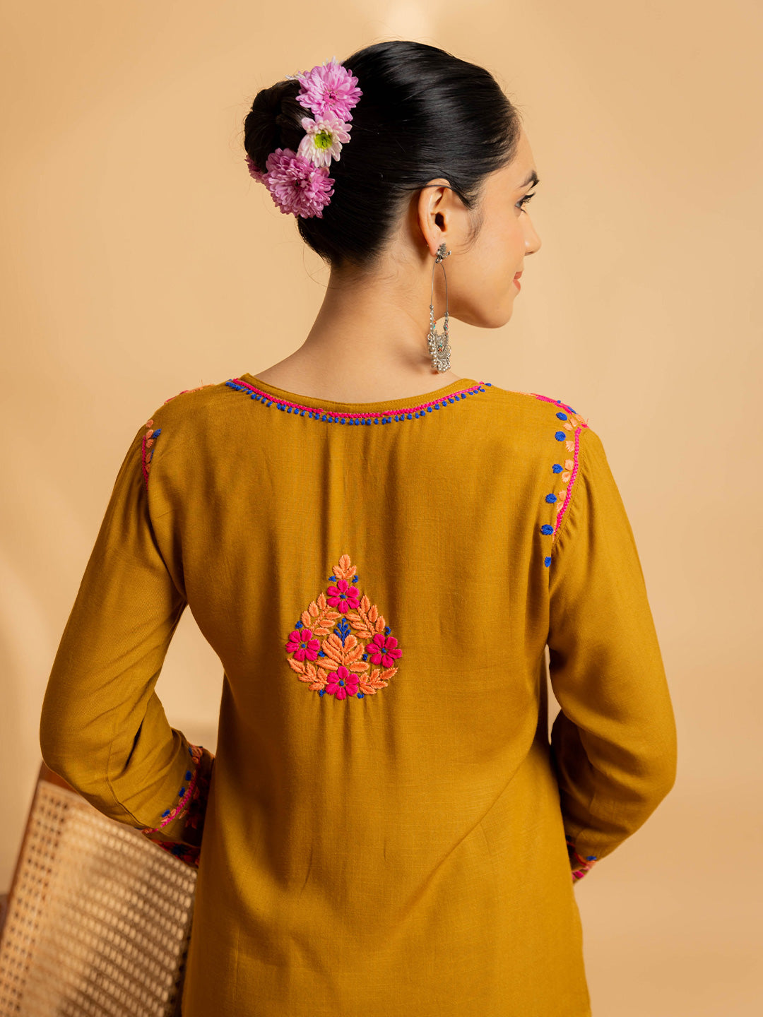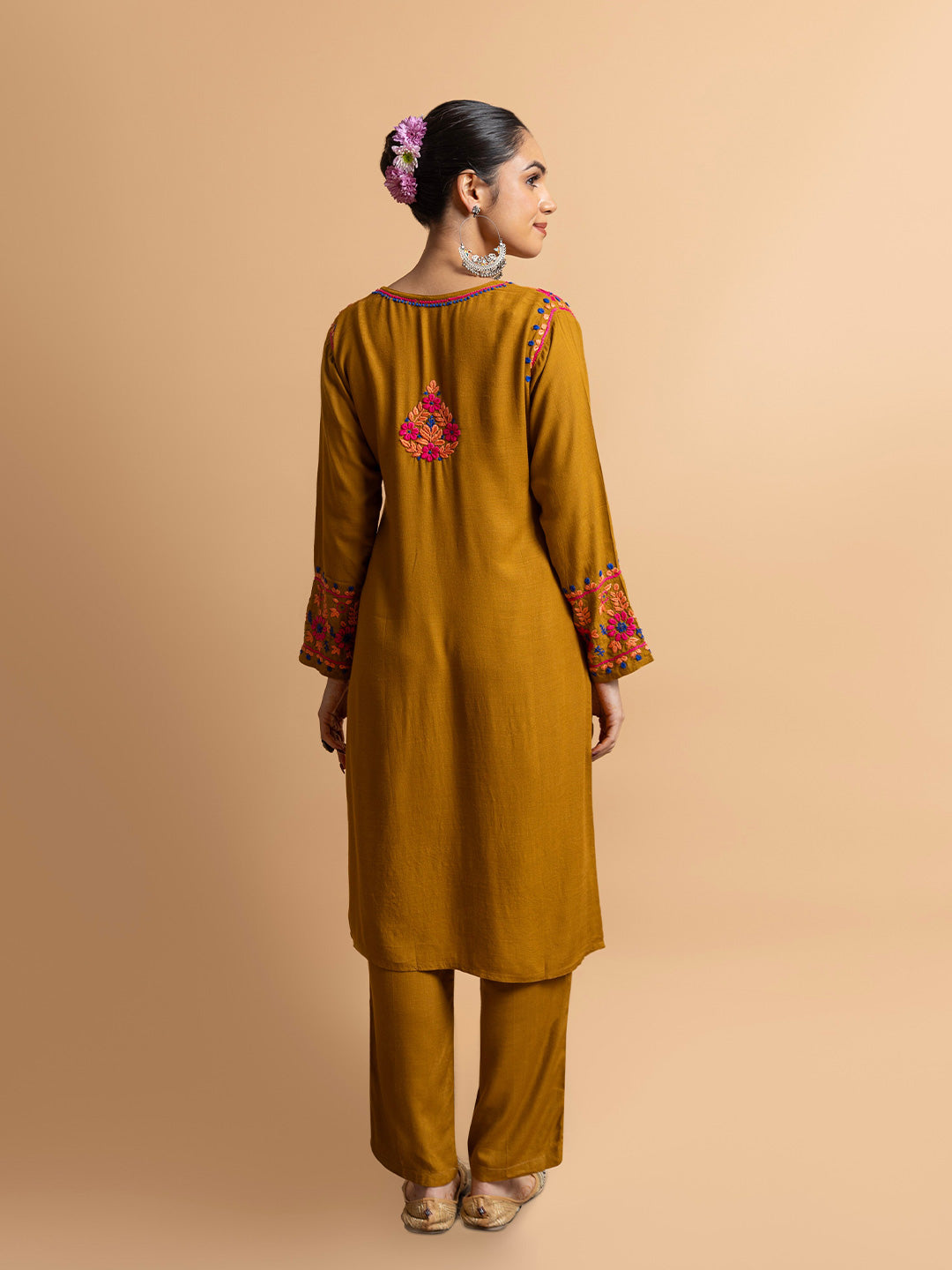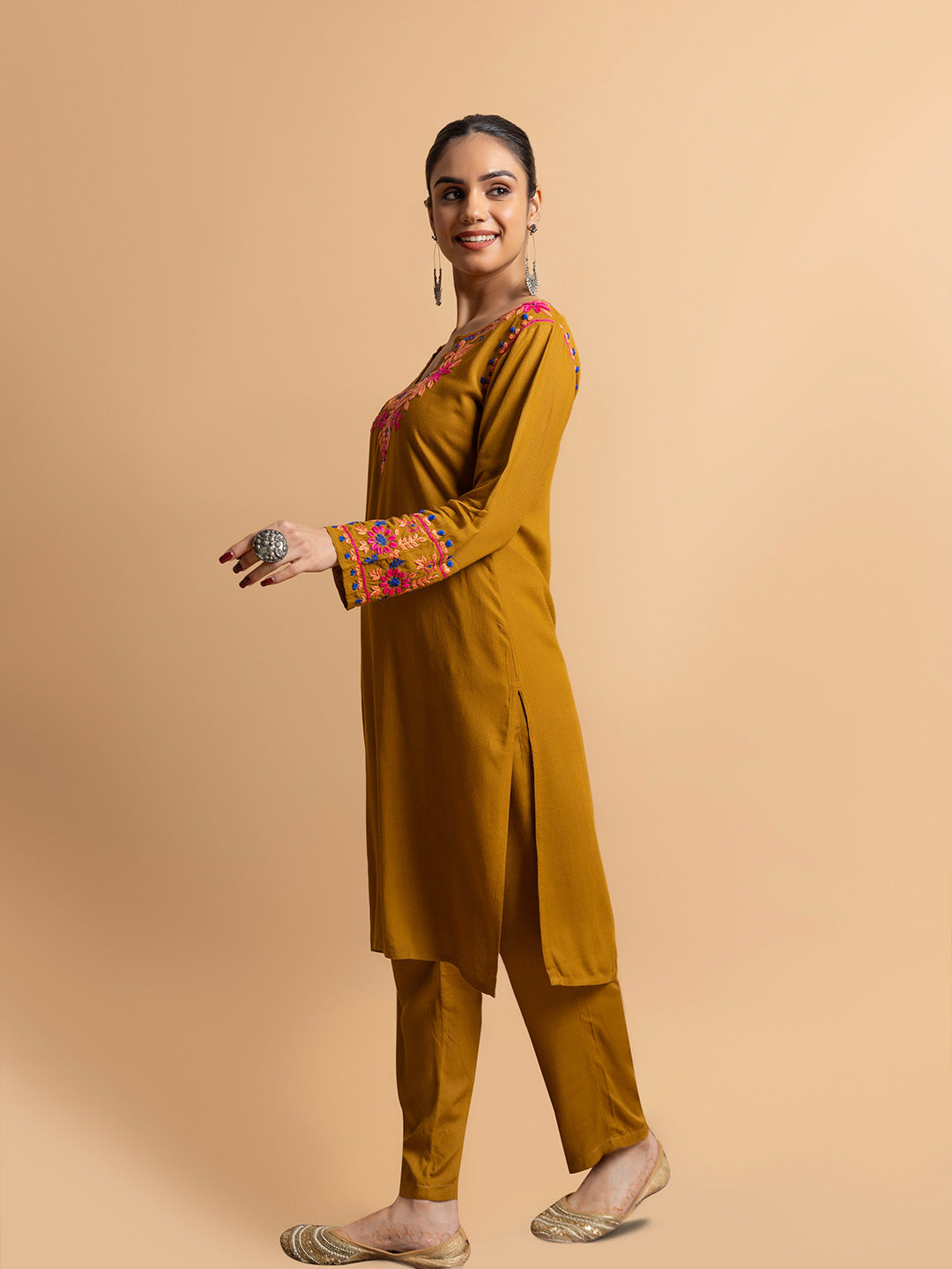 HOUSE OF KARI Floral Yoke Design Chikankari Kurta With Palazzo Product Details Mustard yellow yoke design Kurta with PalazzosKurta design: Flo...
