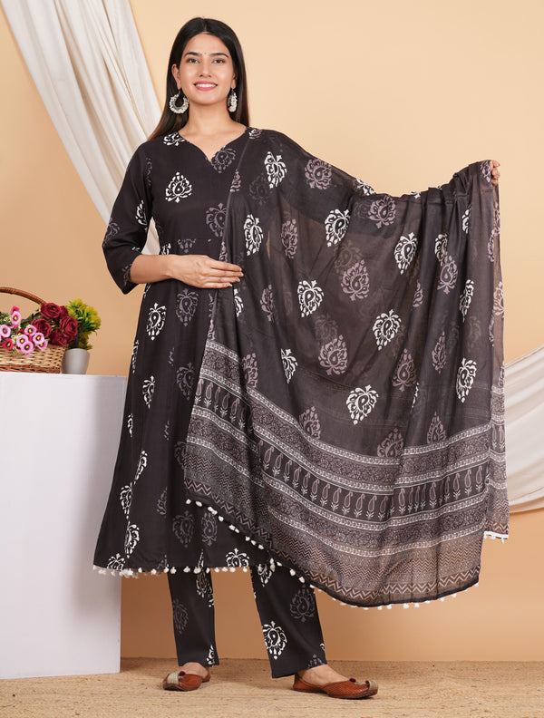 House of RP Wine Rayon Floral Print Kurta, Palazzo & Dupatta SetThis elegant Wine printed kurta suit with white Floral Print is a perfect blend...