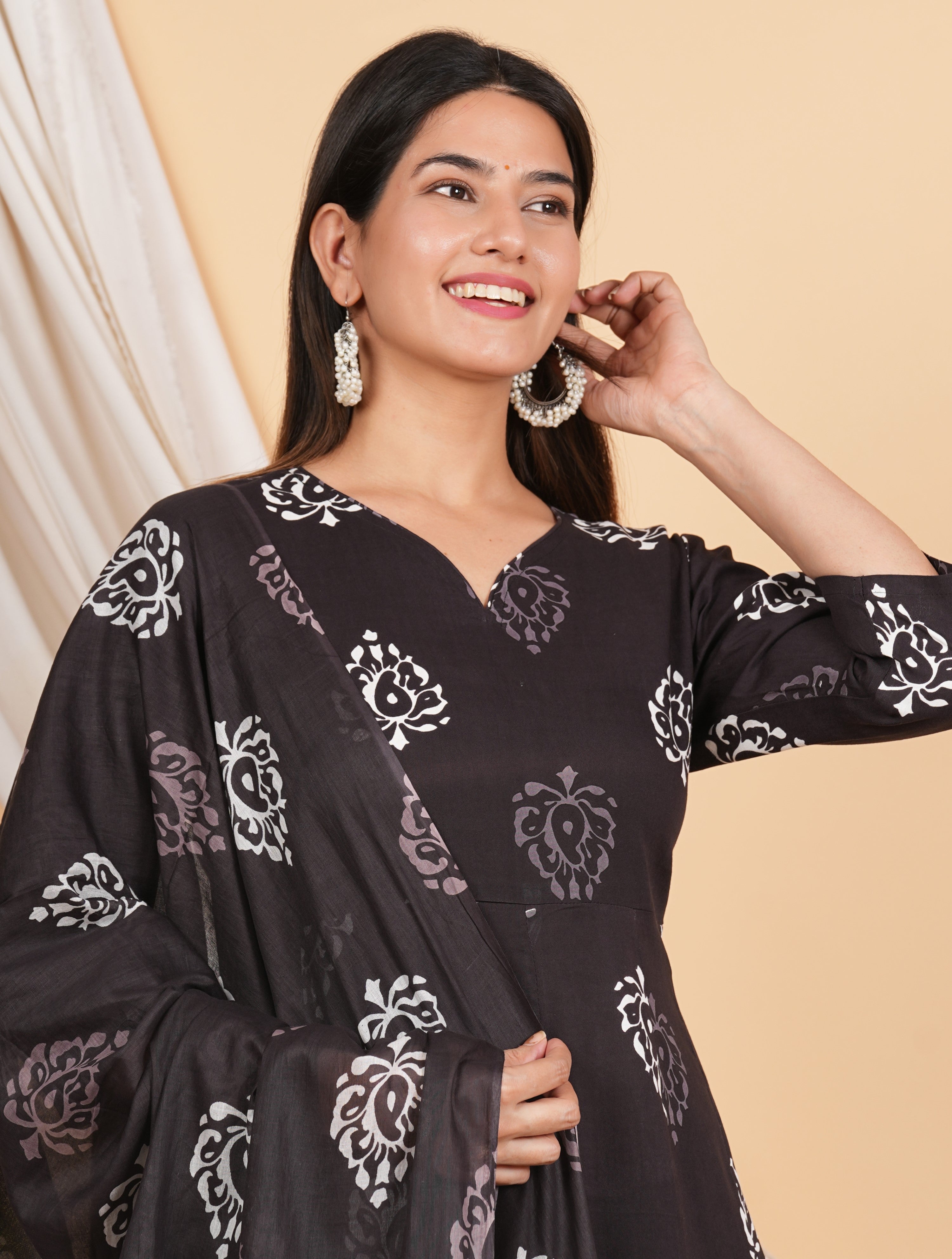 This elegant Wine printed kurta suit with white Floral Print is a perfect blend of traditional and contemporary styles. The Wine kurta features intricate white embroidery on the neckline and sleeves, adding a touch of sophistication to the overall design. The suit is made from high-quality fabric, ensuring comfort and durability. The contrasting white embroidery beautifully complements the Wine base, creating a visually appealing look. Whether you're attending a festive occasion or a casual gathering, this kurta suit is sure to make a statement and leave a lasting impression.