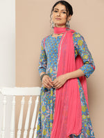 KSUT (House of Varanga) Blue Floral Printed Anarkali Kurta Paired With Printed Palazzo And Dupatta