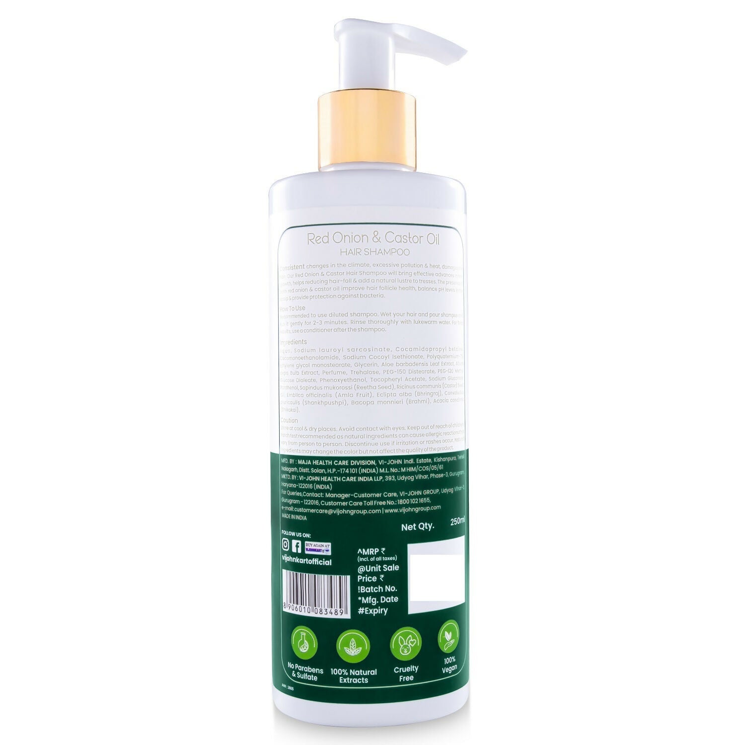 VI-JOHN Prakritik Red Onion & Castor Oil Shampoo Helps with Hair Fall & Re-Growth 100% Bio Actives - 250 ml