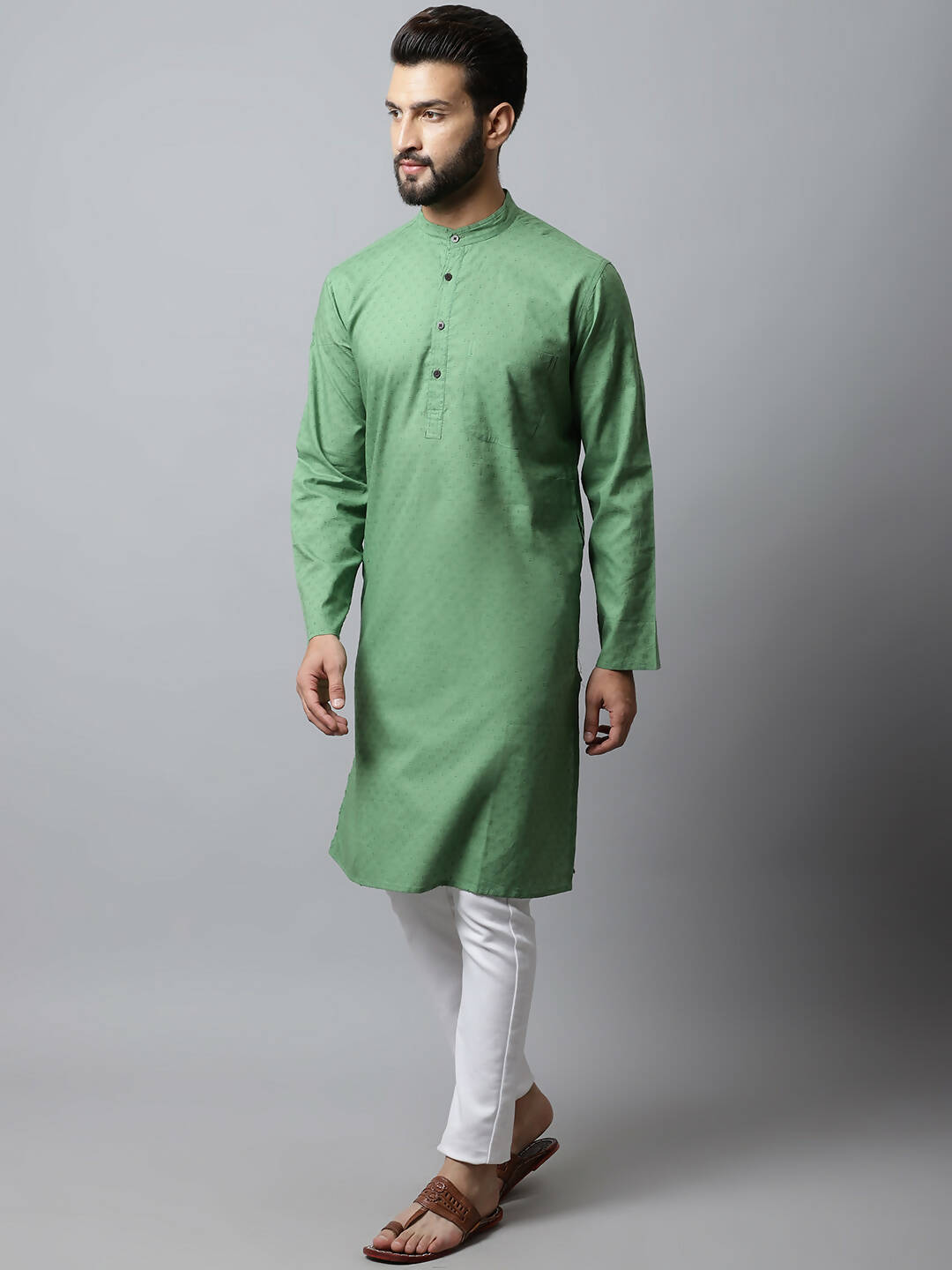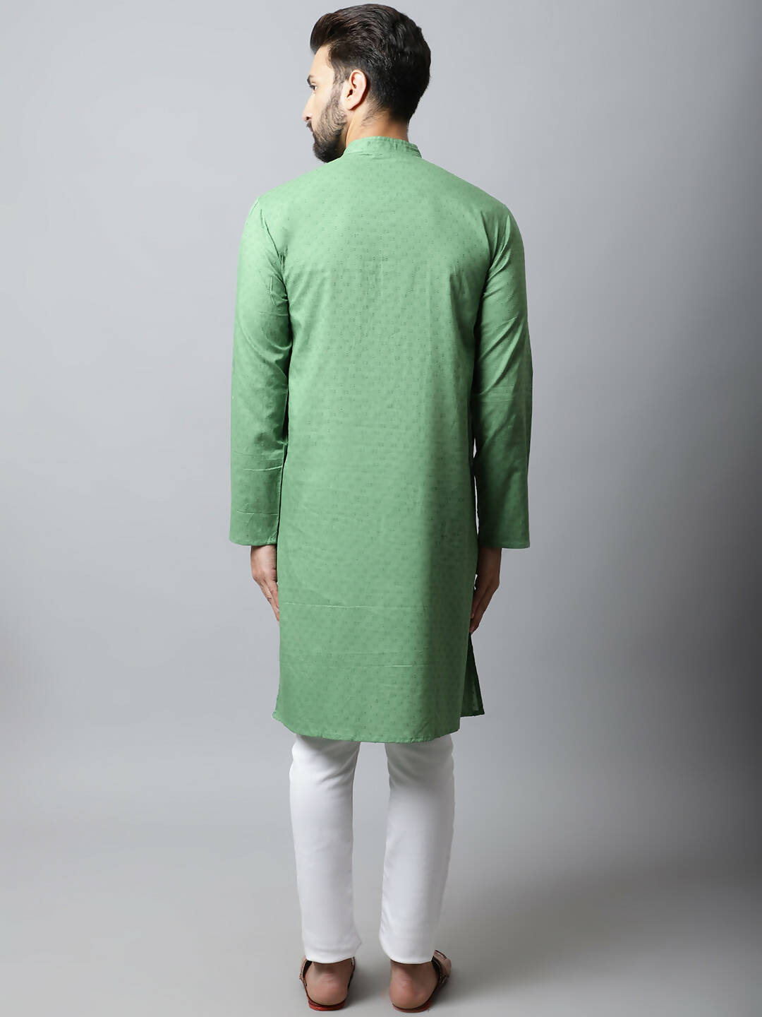 Even Apparels Green Color Pure Cotton Men's Kurta With Band Collar (SLD073) - Distacart