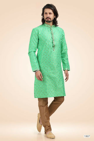 Raivat Ethnic Jacquard Silk Brocade Pintux Work Kurta Pajama In Pista Green Colour