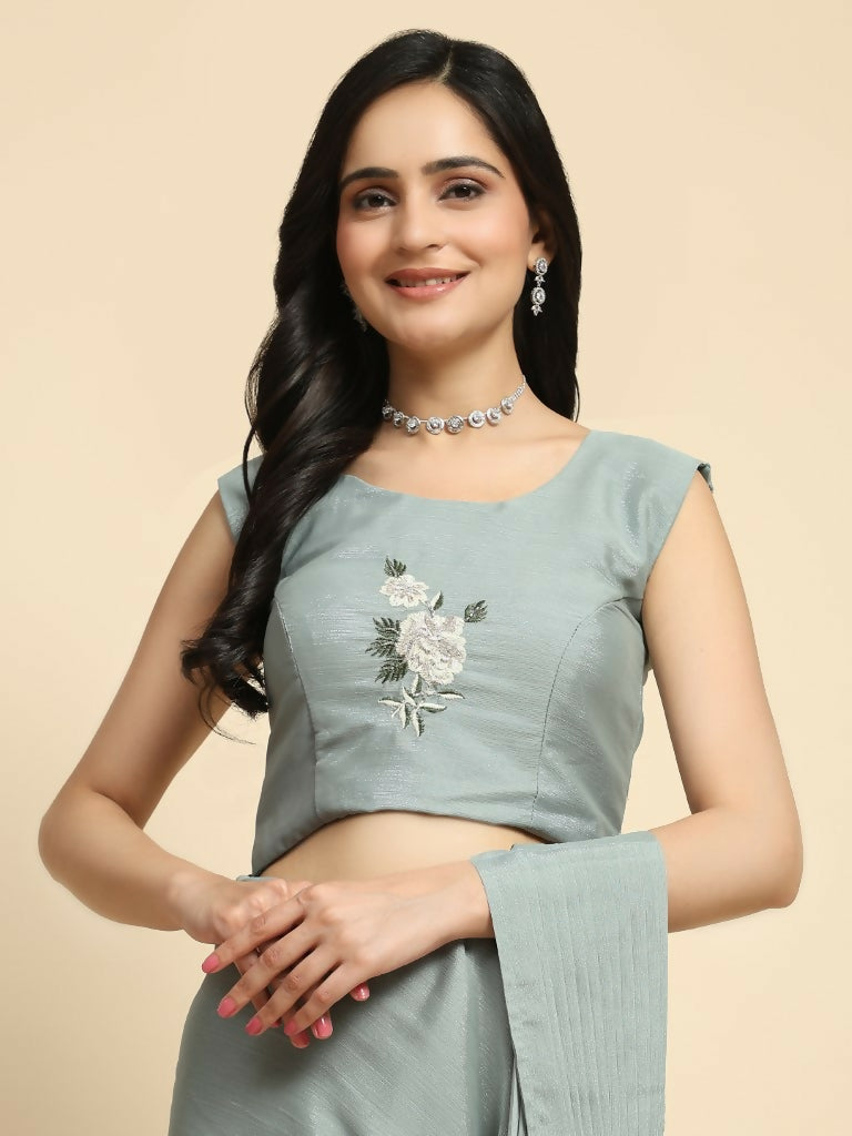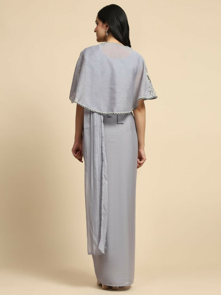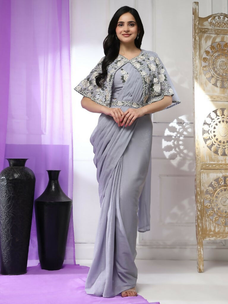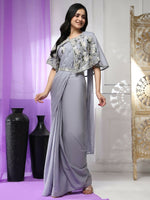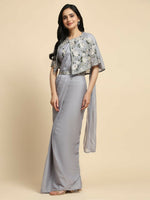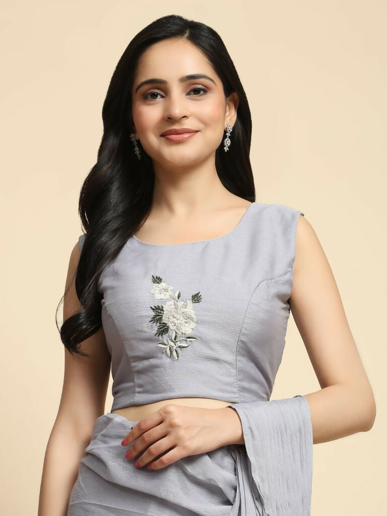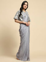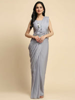 Grey Chiffon Solid Ready to wear Saree with stitched Blouse - Aayan