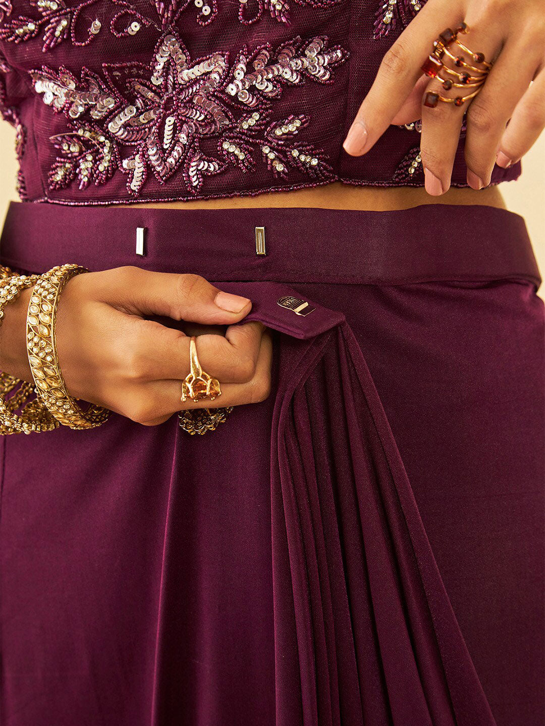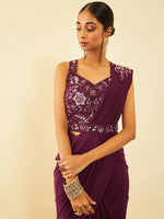 Soch Beads and Stones Embellished Ready to Wear Saree Product Details Design Details: Maroon ready to wear saree Solid saree with solid border ...