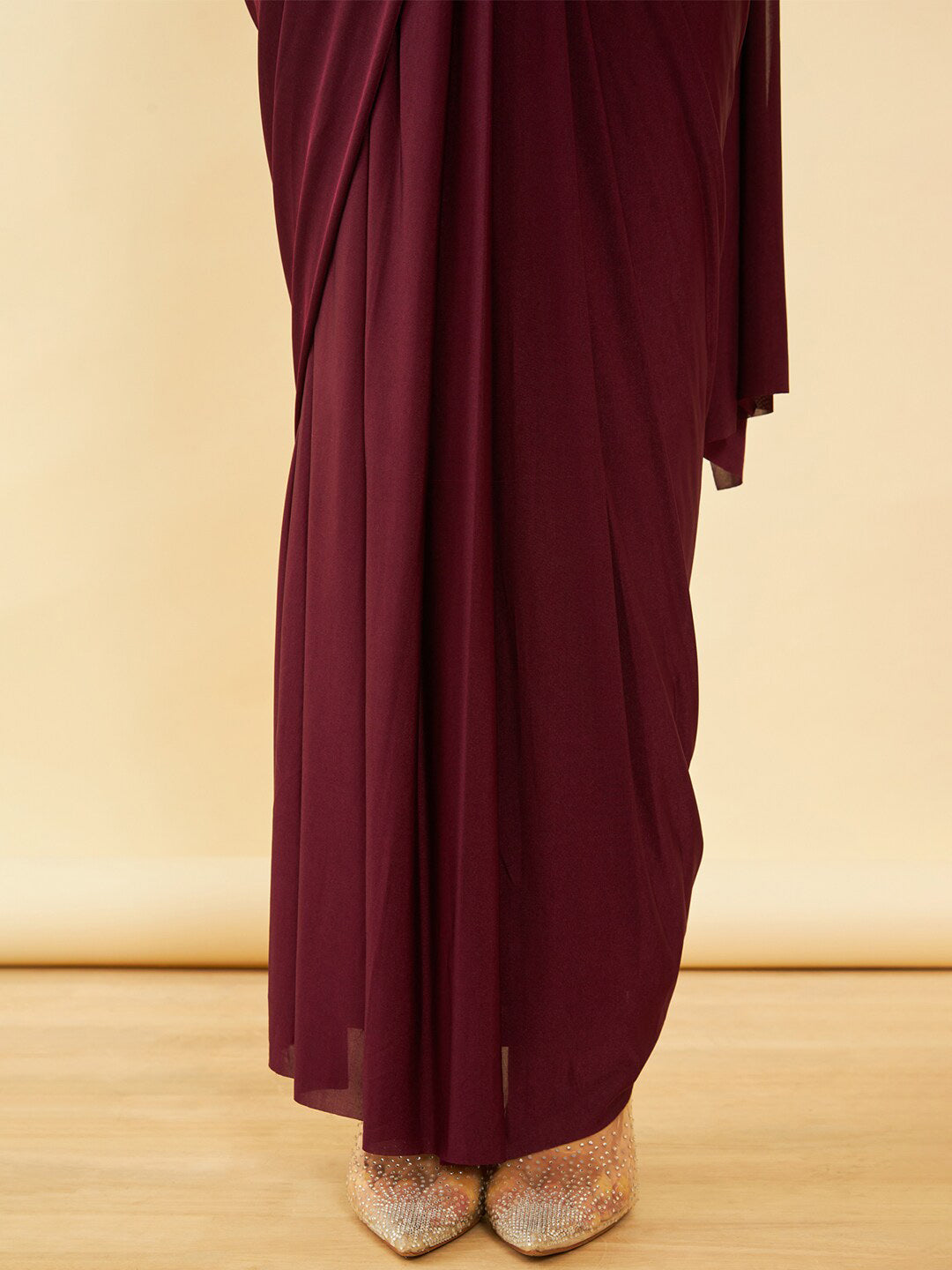 Soch Maroon Beads and Stones Ready to Wear Saree - Free Size