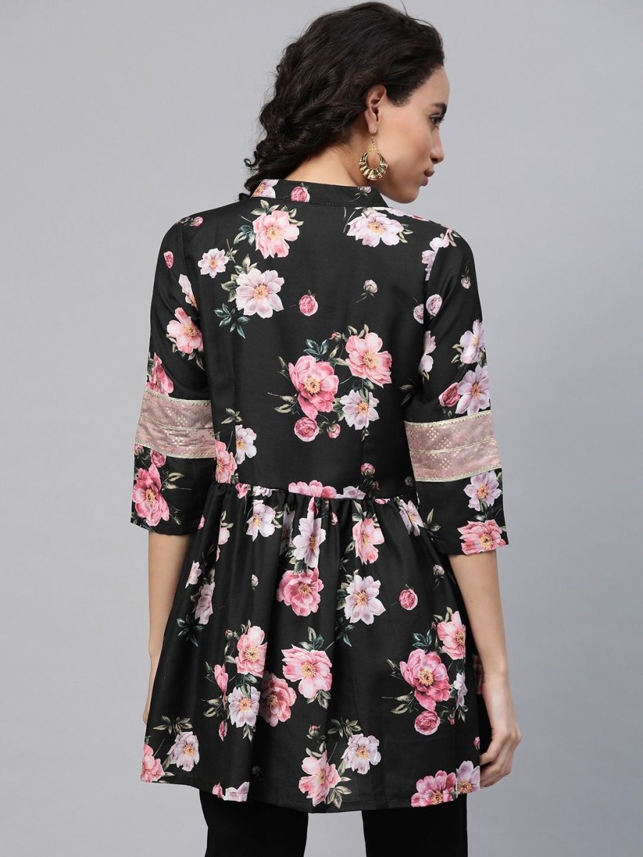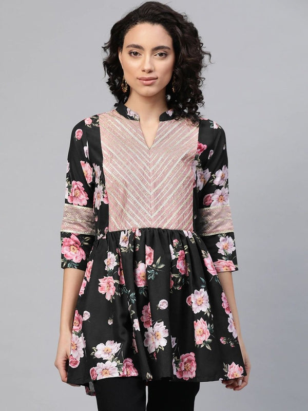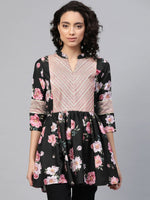 Ahalyaa Women Black Rayon Floral Print Tunic - XS