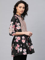 Ahalyaa Women Black Rayon Floral Print Tunic