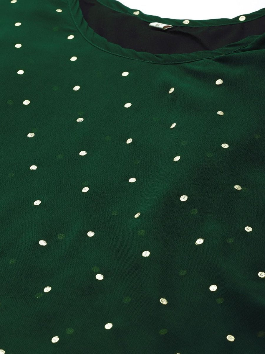 Ahalyaa Women Green Georgette Golden Polka Dots Print Layered Tunic - XS