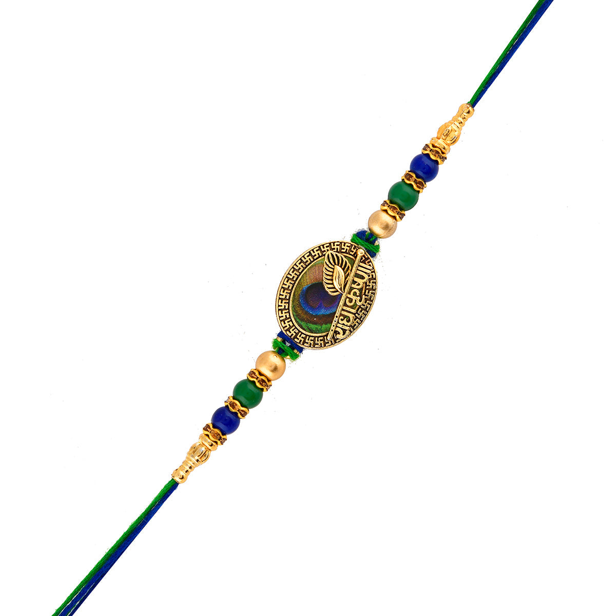 trueBrowns X Voylla Radha Krishna Peacock Feather Beaded Thread Rakhi - Freesize
