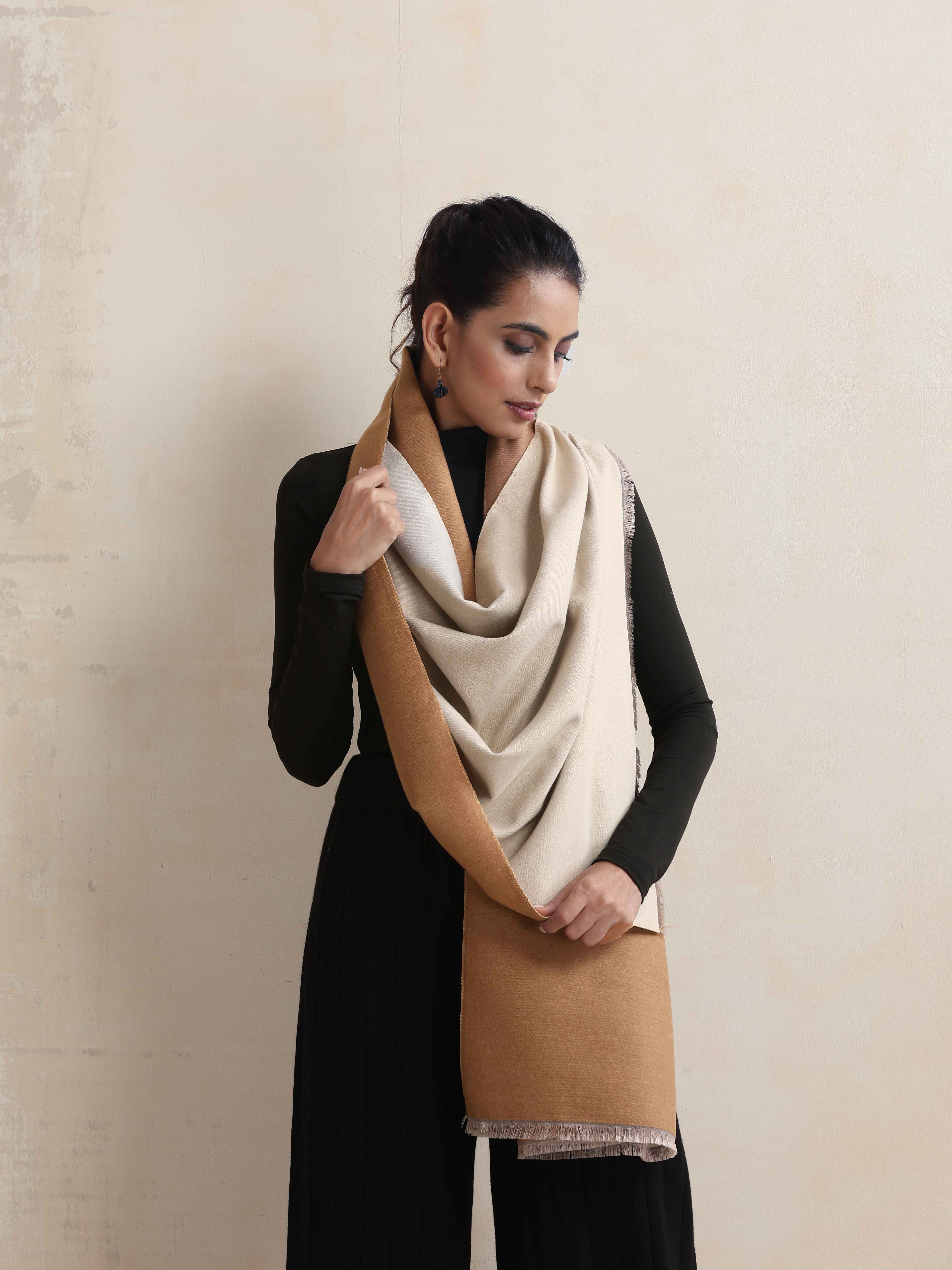 trueBrowns Brown Reversible Solid Woollen Stole - Freesize