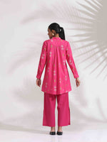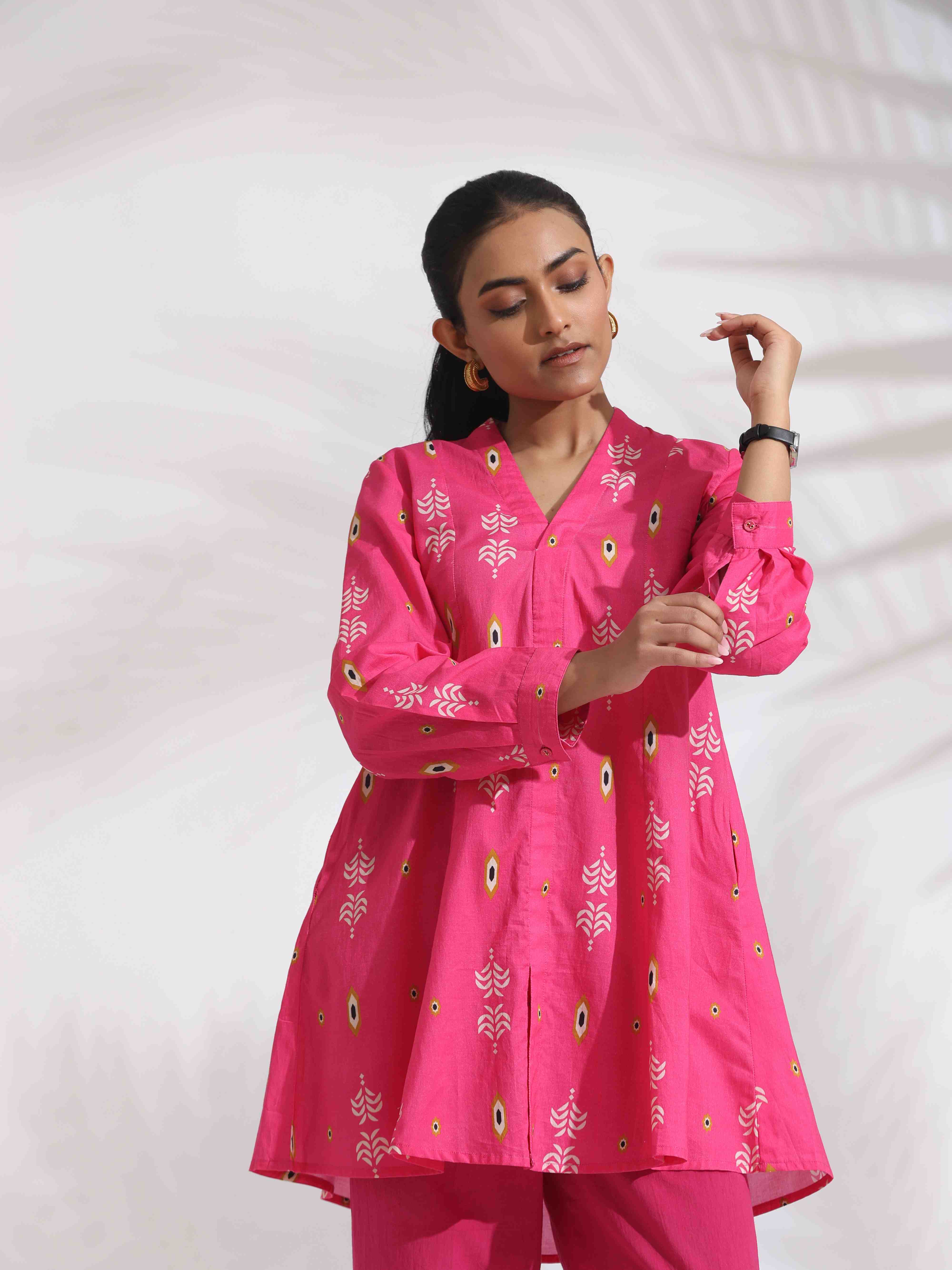 trueBrowns Pink Cotton Print Flared Top Co-ord Set