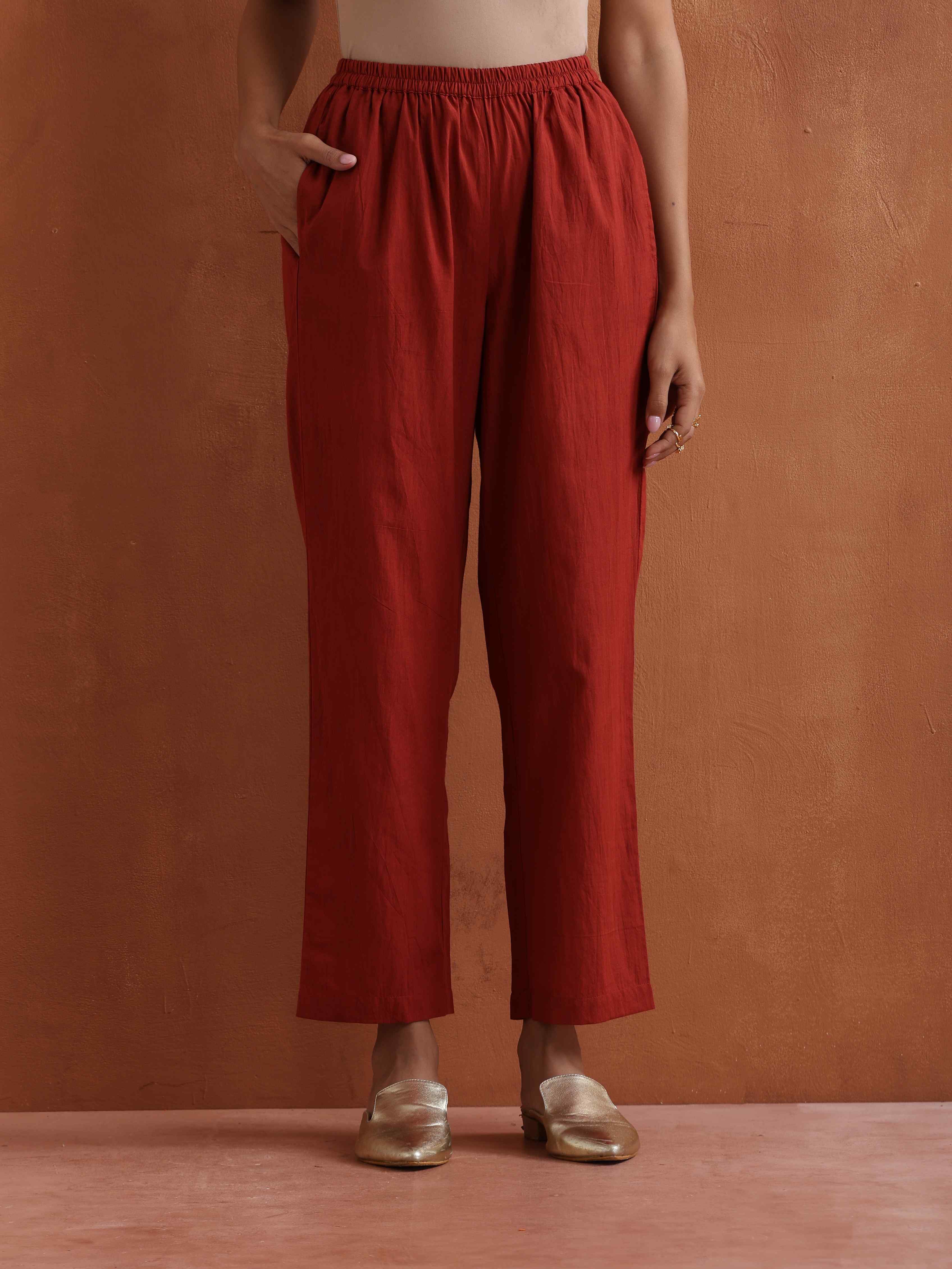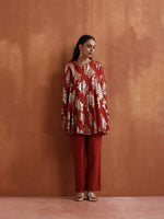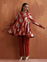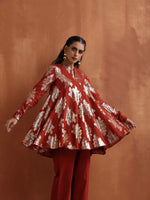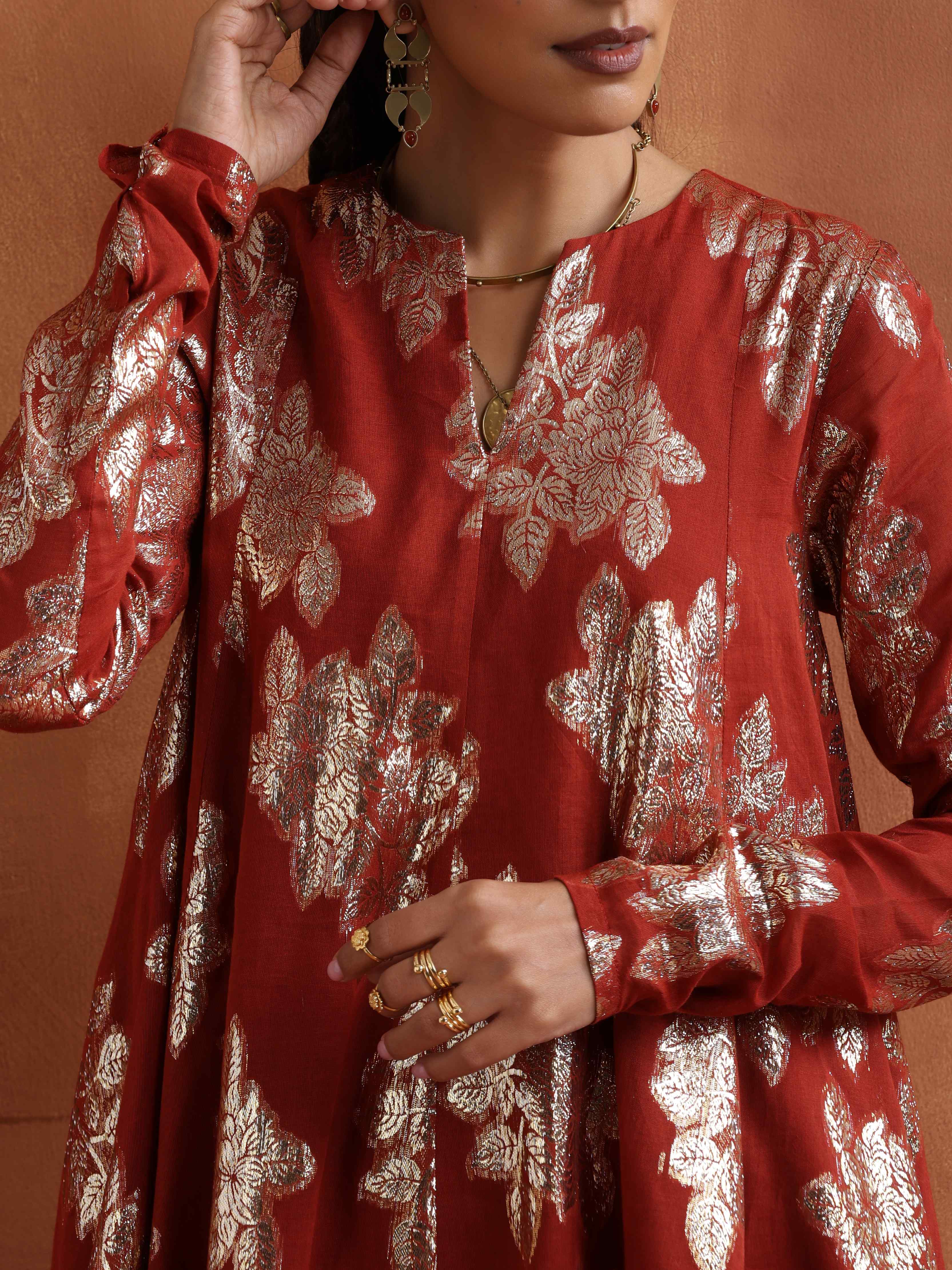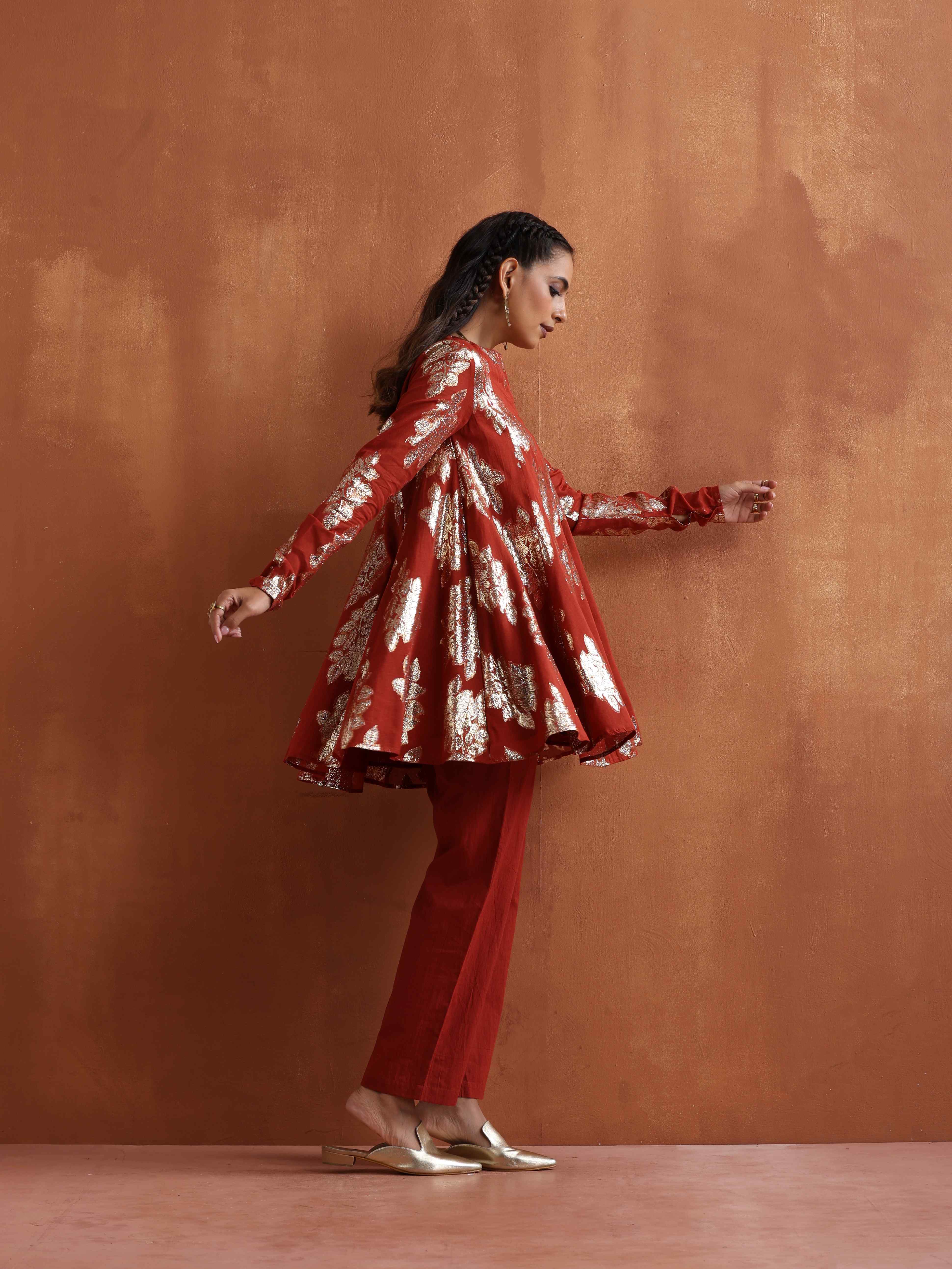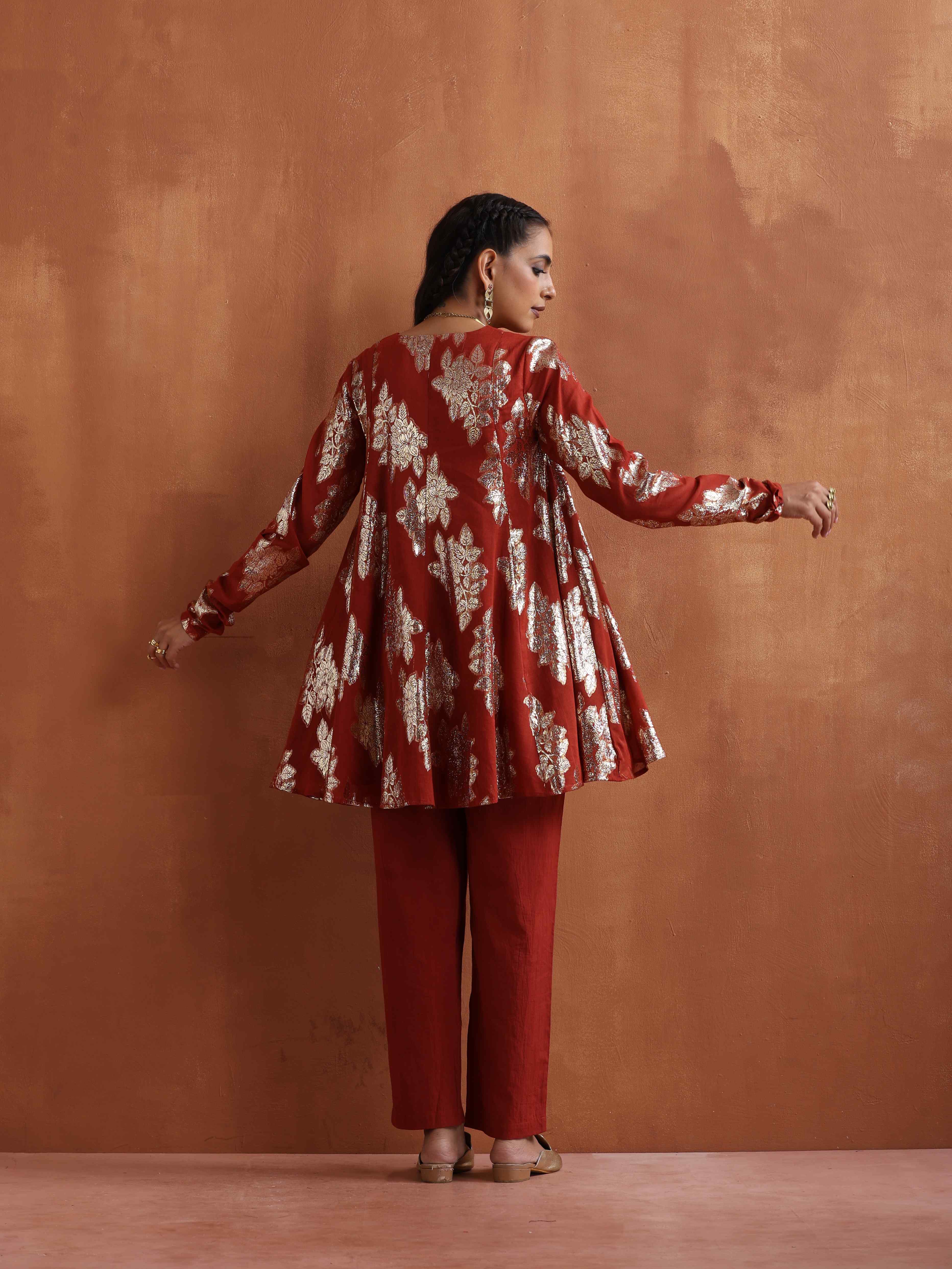 trueBrowns Rust Metallic Flared Anarkali Co-ord Set - 2XS