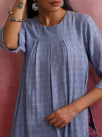 trueBrowns Sky Blue Cotton Dobby Kurta Set - XS