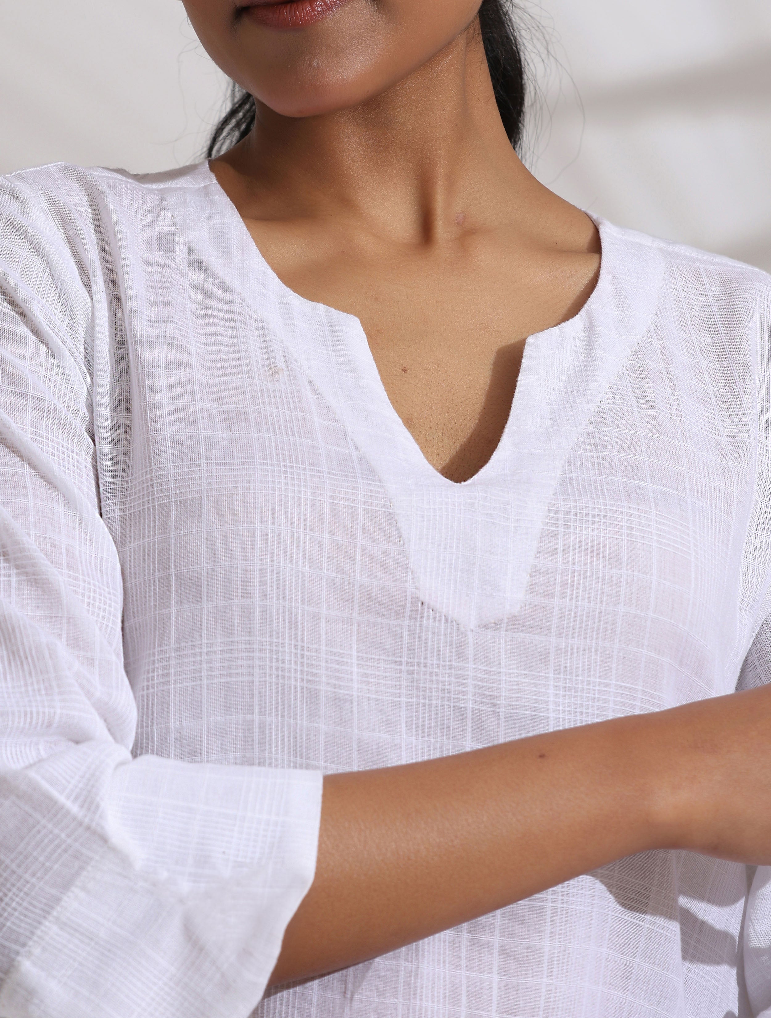 Model height is 5.6ft and is wearing XS size.