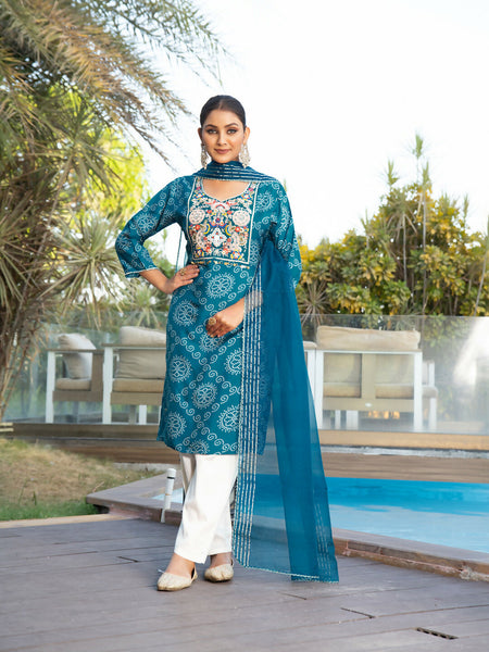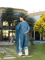 Joban Fashion Blue Cotton Premium Pure Viscose Print Dola With Handwork Kurta set