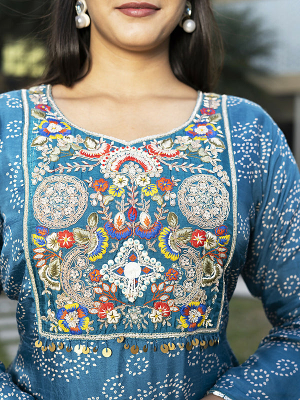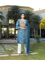 Joban Fashion Blue Cotton Premium Pure Viscose Print Dola With Handwork Kurta set - 36
