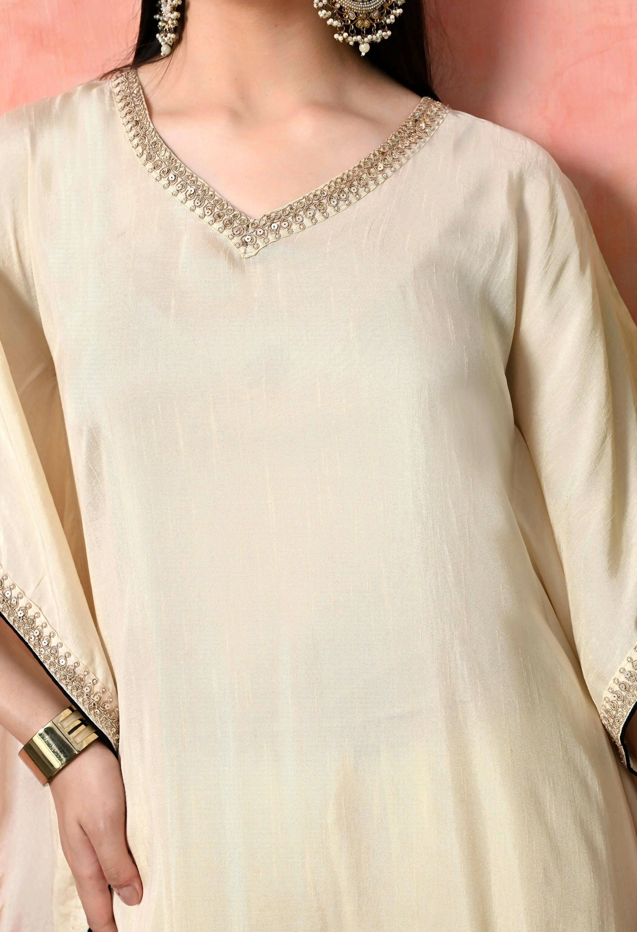 Joban Fashion Off White Cotton Premium Pure Viscose Dola With Kolkata Handwork Kurta set