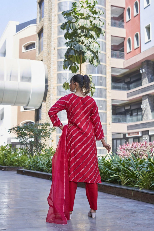 Joban Fashion Red Premium Pure Viscose Print Dola With Handwork Kurta Set