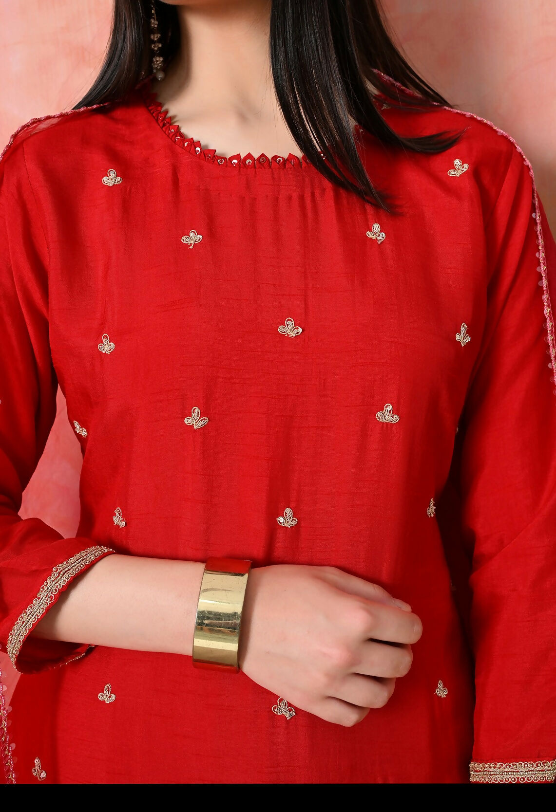 Joban Fashion Red Premium Pure Viscose Print Dola With Handwork Kurta Set