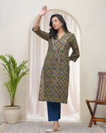 Blue ajkakh Printed gathered style V neckline kurti with blue pant