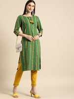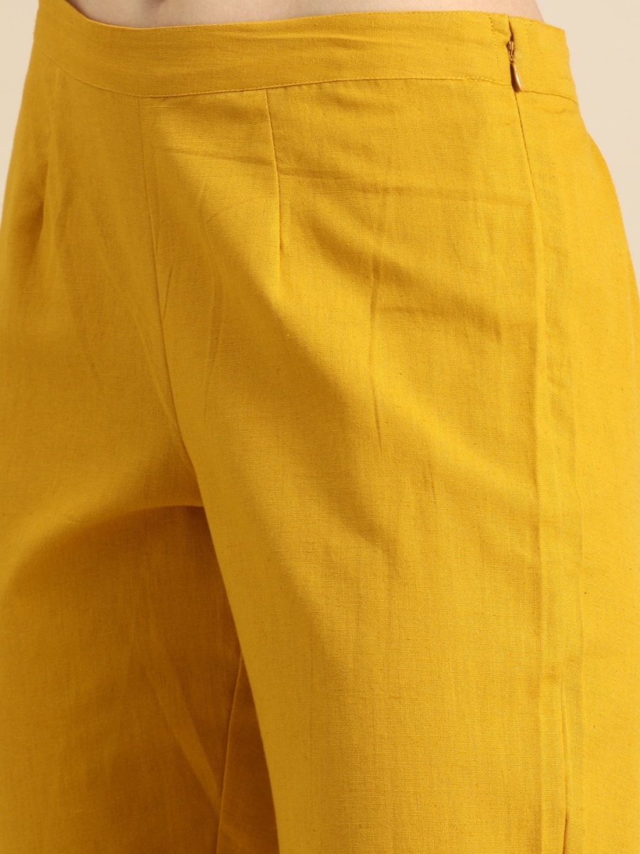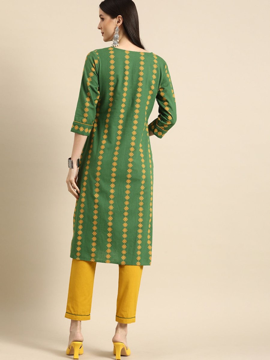 All About You Women Green Ethnic Motifs Printed Kurta with Mustard Yellow Trousers