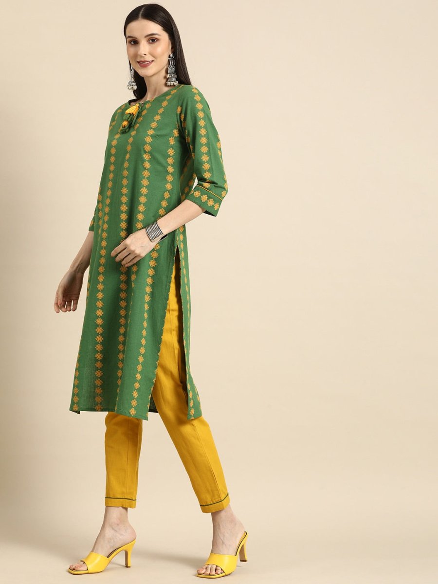All About You Women Green Ethnic Motifs Printed Kurta with Mustard Yellow Trousers Product Details Green printed Kurta with TrousersKurta design...