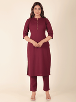 Aramya Straight Linen Cotton Solid Women's Kurta - PurpleExperience unmatched comfort and style with our Perfect Fit Kurta made using premium quali...