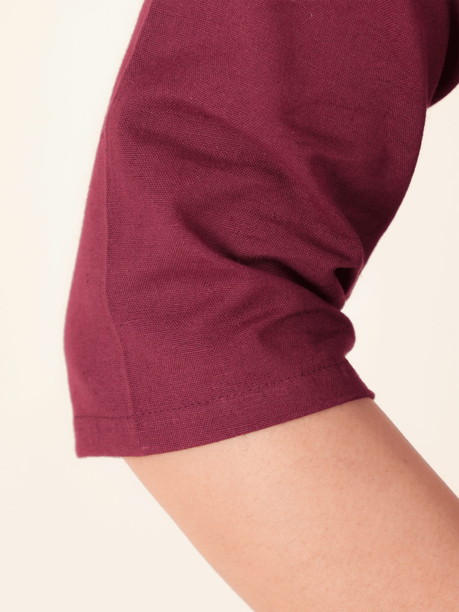 Aramya Straight Linen Cotton Solid Women's Kurta - Purple