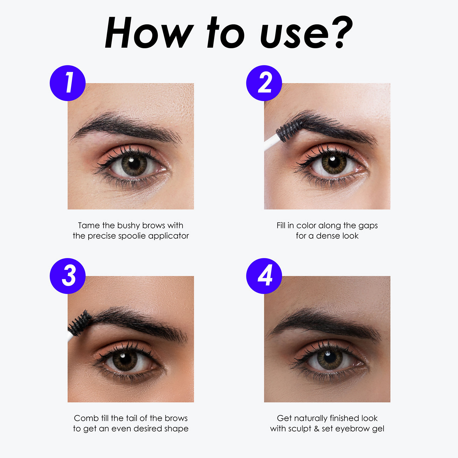 • Start by filling-in the inner corners of your eyebrows and gradually move towards the ends. Fill in color along the gaps for a dense look.