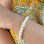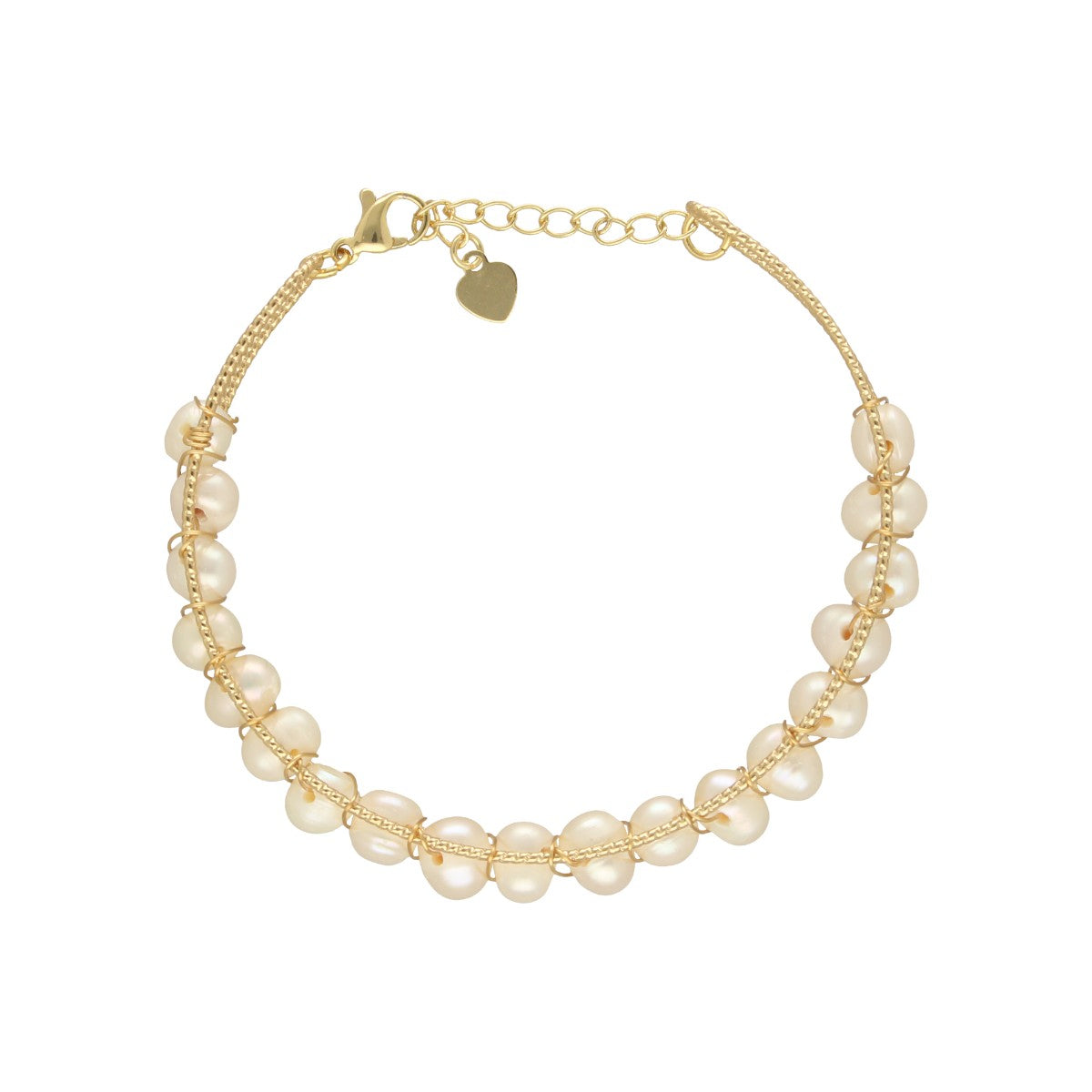 Description:A classic piece for modern women, this gold-plated pearl bracelet is a statement of grace and beauty.