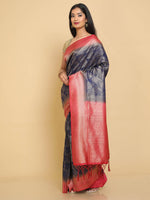 Kalamandir Ethnic Motifs Dark Blue Silk Blend Saree