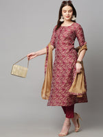 Kalini Women Red Floral Woven Kurta with Trousers & Dupatta - L