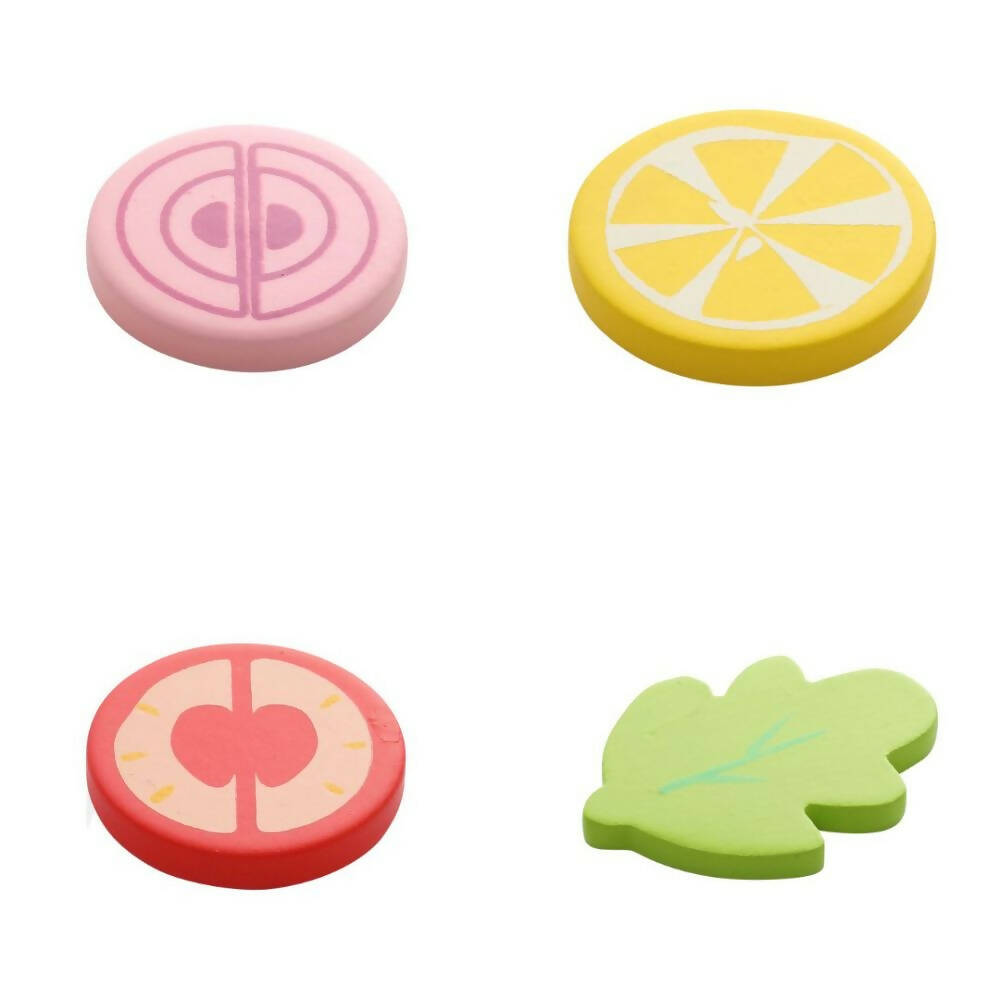 • Wooden Cooking Set: NESTA Toys wooden kitchen has - Frying pan (5 cm x 20 cm x 12 cm), Cooking Pot (8 cm x 14 cm x 12 cm), 1 cooking spoon, 1 tea spoon, 1 plate (12 cm dia) and 4 vegetable cut section.