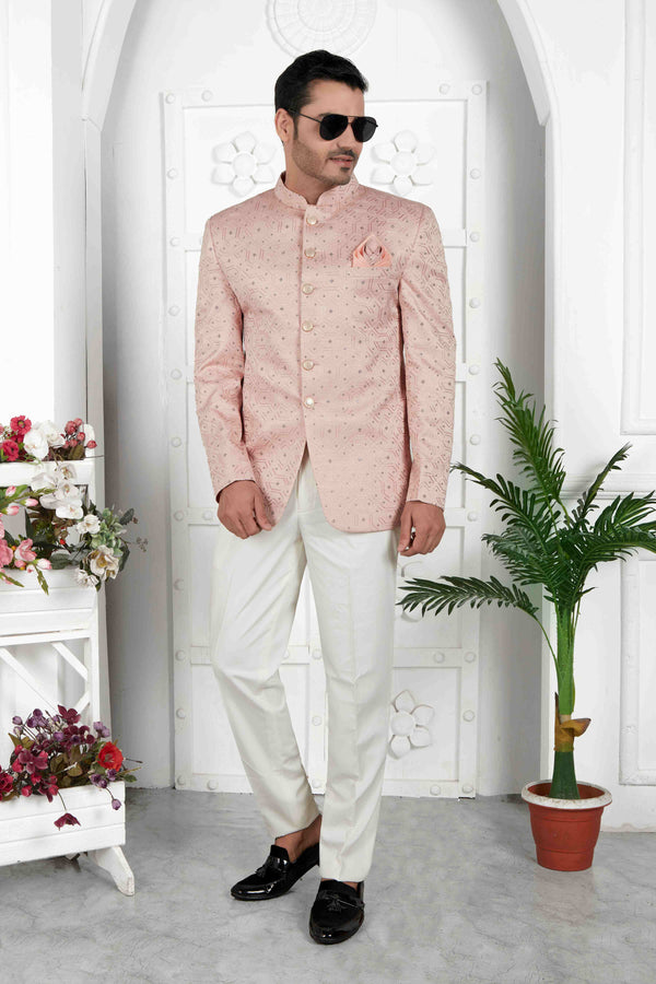 Raivat Ethnic Art Silk Thread Work Jodhpuri In Peach ColourProduct Details:Elevate your festive wardrobe with this beautifully tailored Jodhpuri ja...