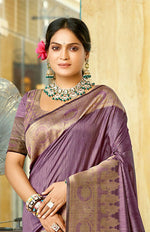 Sangam Prints Purple Assam Silk Woven Work Traditional Saree About the product:SANGAM PRINTS brings to you this saree which is made from Linen fabr...