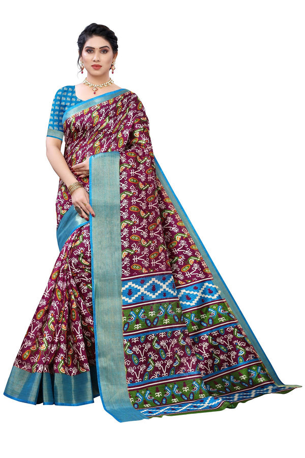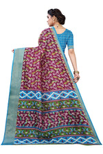 Vamika Purple and Blue Linen Jari Border Saree Online At Low Price