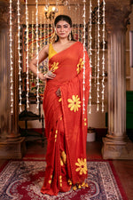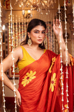 Very Much Indian Mastaani - Pure Mul Cotton Handloom Saree with Beautiful Floral Handpaint - Red